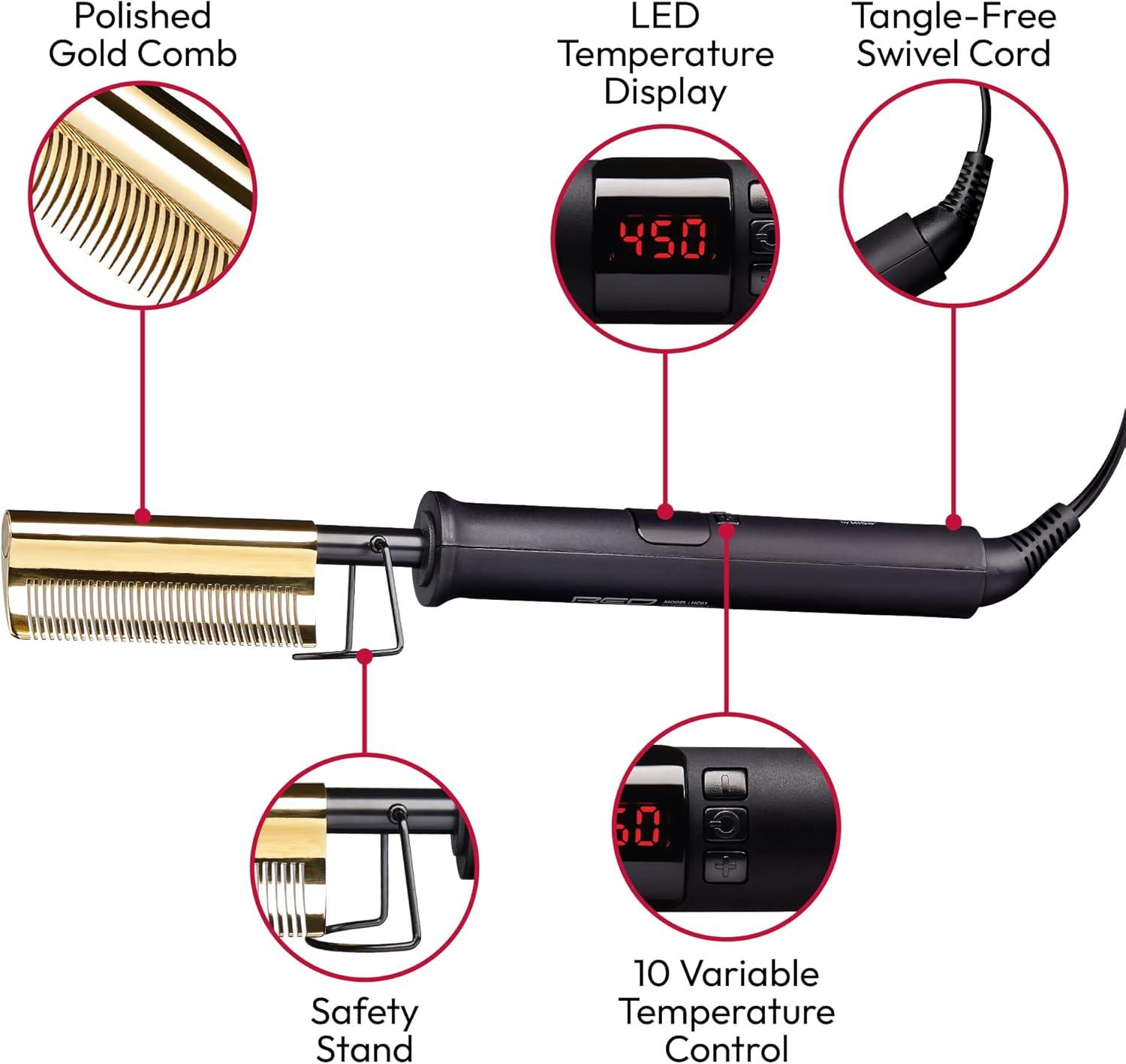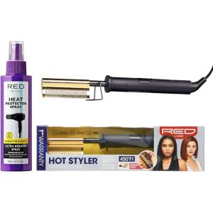 Red by Kiss Curved Hot Comb Hair Straightener & Heat Protector Bundle