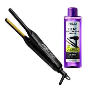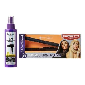 Red by Kiss Ceramic Tourmaline Flat Iron (3/4″) & Ultra Keratin Heat Protector Spray