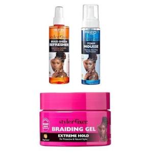 Red by Kiss Braiding Gel Extreme Hold with Braid Sheen Refresher Spray and Foaming Mousse