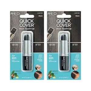 RED by Kiss Quick Cover Root Touch Up Stick, Water-Resistant Temporary Gray Hair Concealer with Brush for Roots and Beard, Long-Lasting Coverage, Easy Application (2 Pack, Black)(1 Pack Deep Wine)