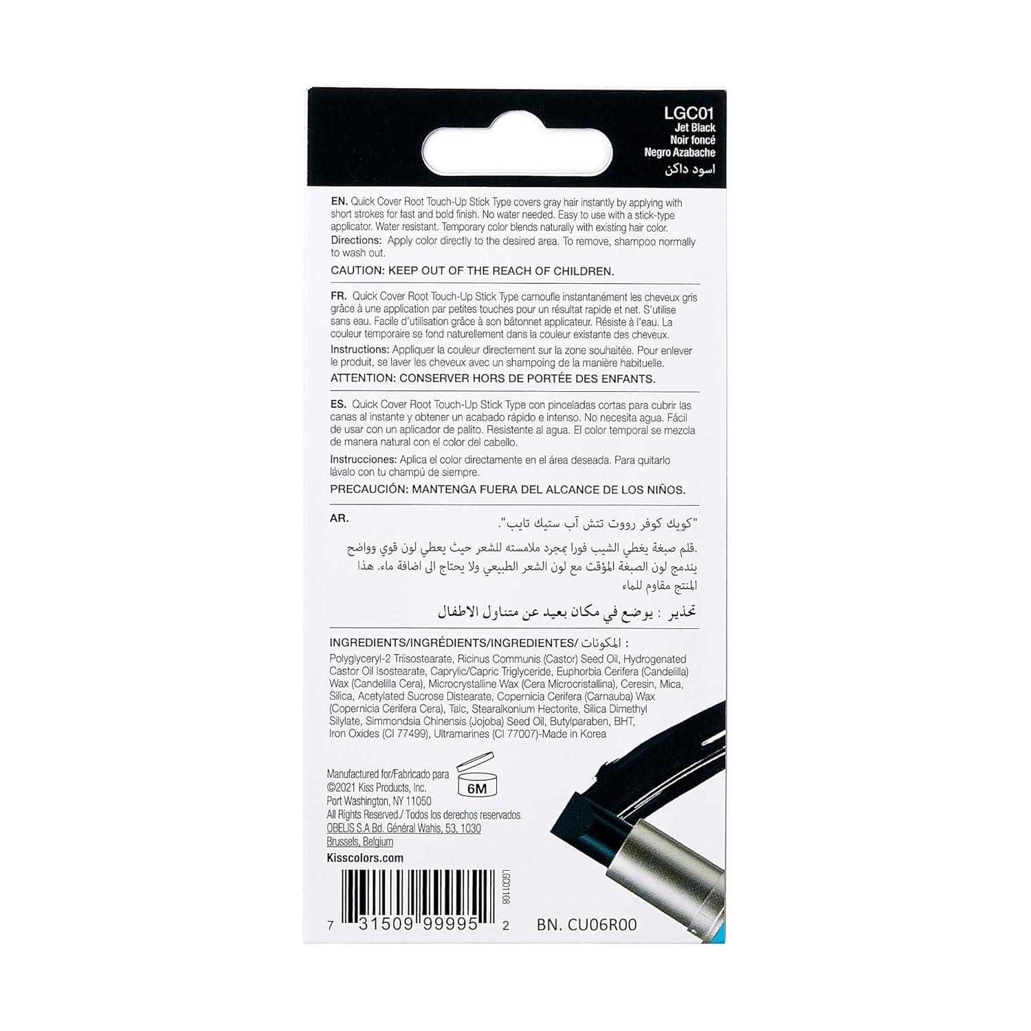 RED by Kiss Quick Cover Root Touch Up Stick, Water-Resistant Temporary Gray Hair Concealer with Brush for Roots and Beard, Long-Lasting Coverage, Easy Application (2 Pack, Black)(Jet Black)