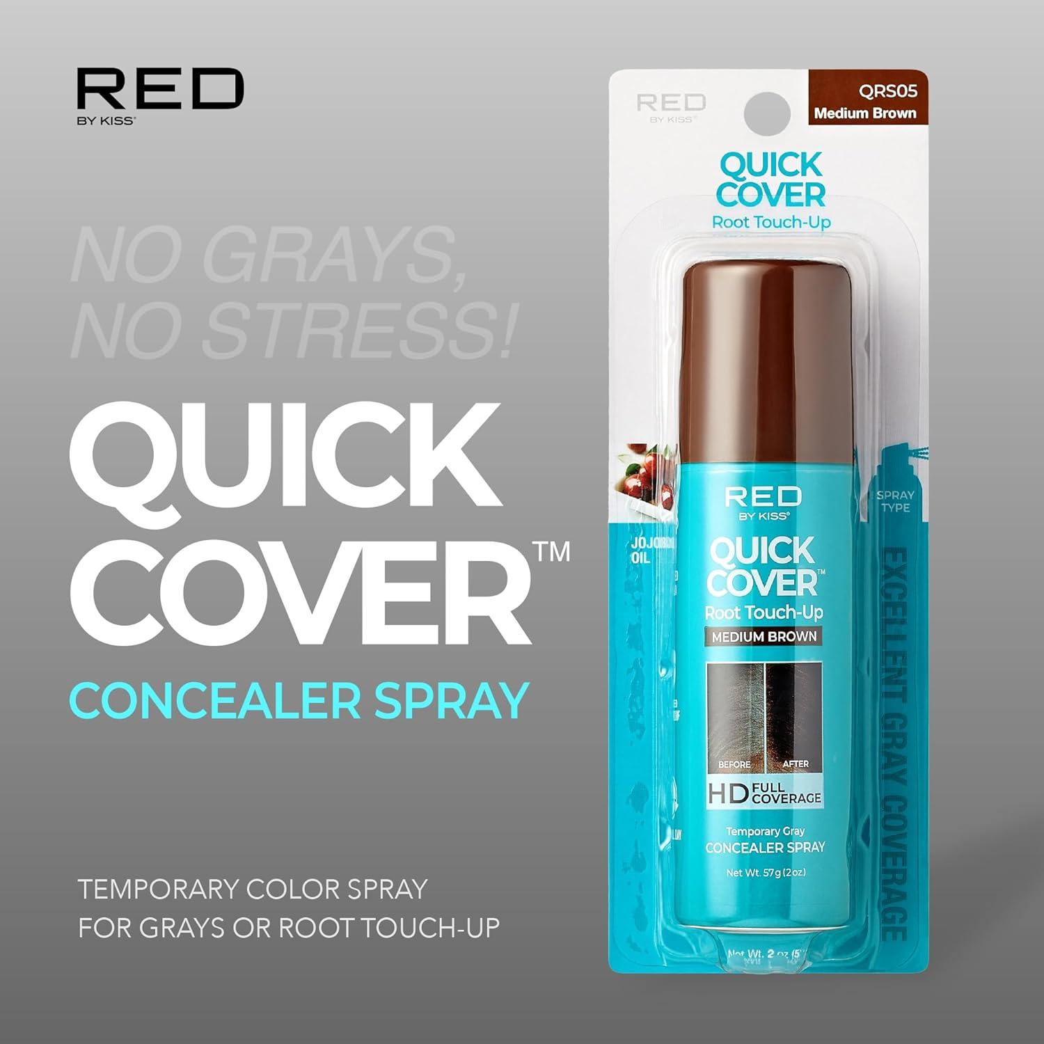 Red by Kiss Quick Cover Root Touch-Up Spray, Waterproof & Smudge-Proof Gray Coverage, Quick-Dry Formula with Jojoba Oil, Lightweight & Travel-Friendly (Medium Brown, 2oz)(Medium Brown)