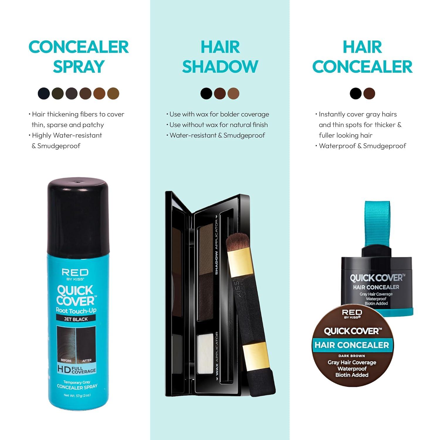 Red by Kiss Quick Cover Root Touch-Up Spray, Waterproof & Smudge-Proof Gray Coverage, Quick-Dry Formula with Jojoba Oil, Lightweight & Travel-Friendly (Medium Brown, 2oz)(Jet Black)