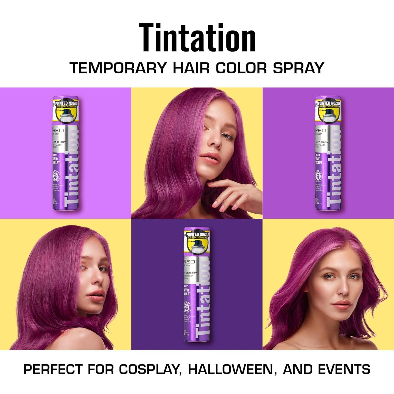 Red by Kiss Tintation Temporary Hair Color Spray 2.82oz, Quick-Dry & Smudge-Proof, Vivid Color Washable Hair Dye, Styling Spray Cosplay Halloween Birthday Party Festival (Vivid Violet)