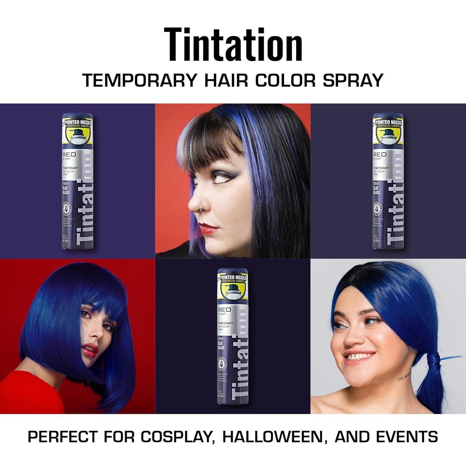 Red by Kiss Tintation Temporary Hair Color Spray 2.82oz, Quick-Dry & Smudge-Proof, Vivid Color Washable Hair Dye, Styling Spray Cosplay Halloween Birthday Party Festival (Blue Black)