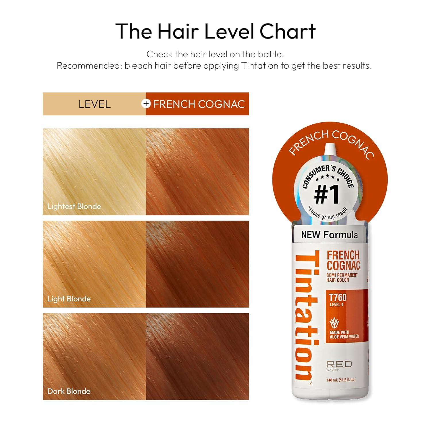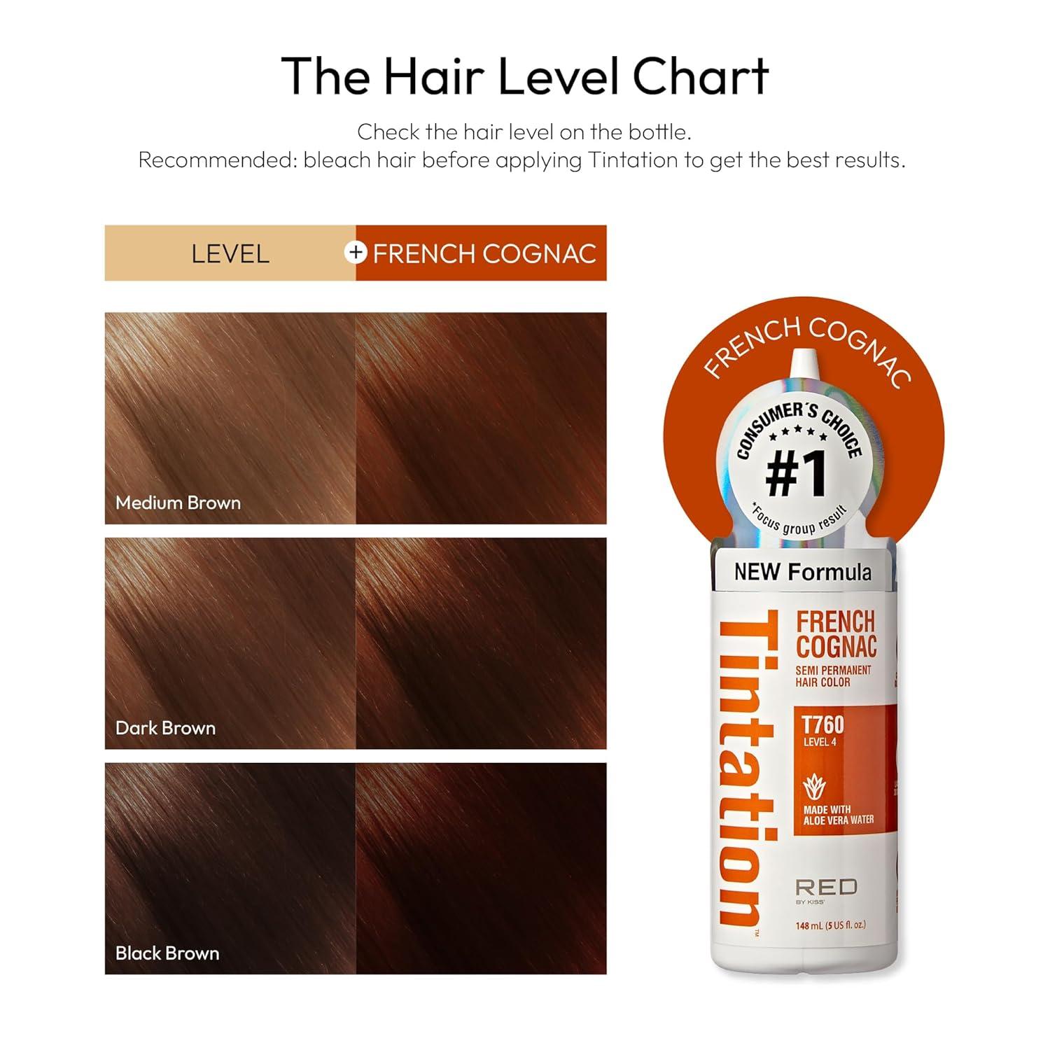 Red by Kiss Tintation Semi-Permanent Hair Color, Aloe Vera Water Based, Argan Oil, Olive Oil, Collagen & Keratin, Long-Lasting Color Dye (Cherry Red, 5 Fl Oz)(French Cognac)
