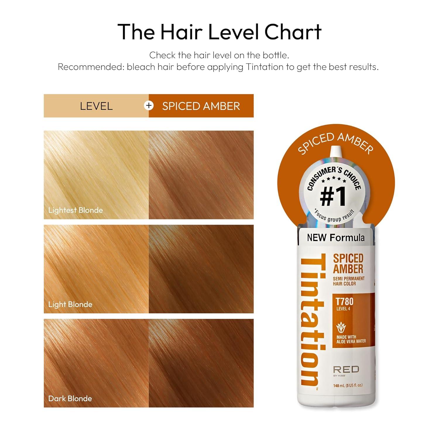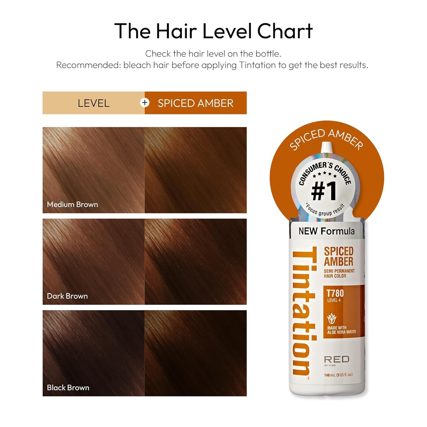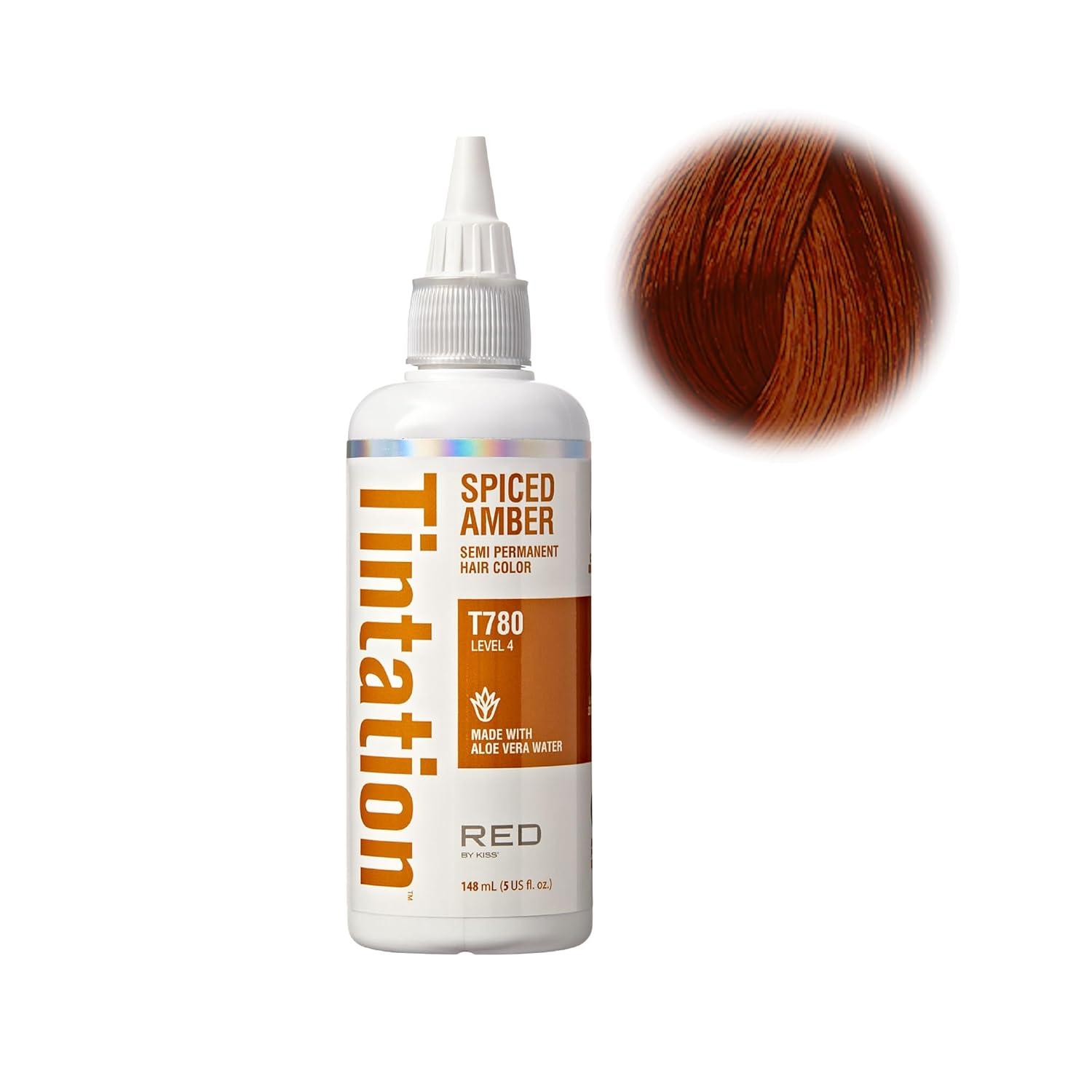 Red by Kiss Tintation Semi-Permanent Hair Color, Aloe Vera Water Based, Argan Oil, Olive Oil, Collagen & Keratin, Long-Lasting Color Dye (Cherry Red, 5 Fl Oz)(Spiced Amber)