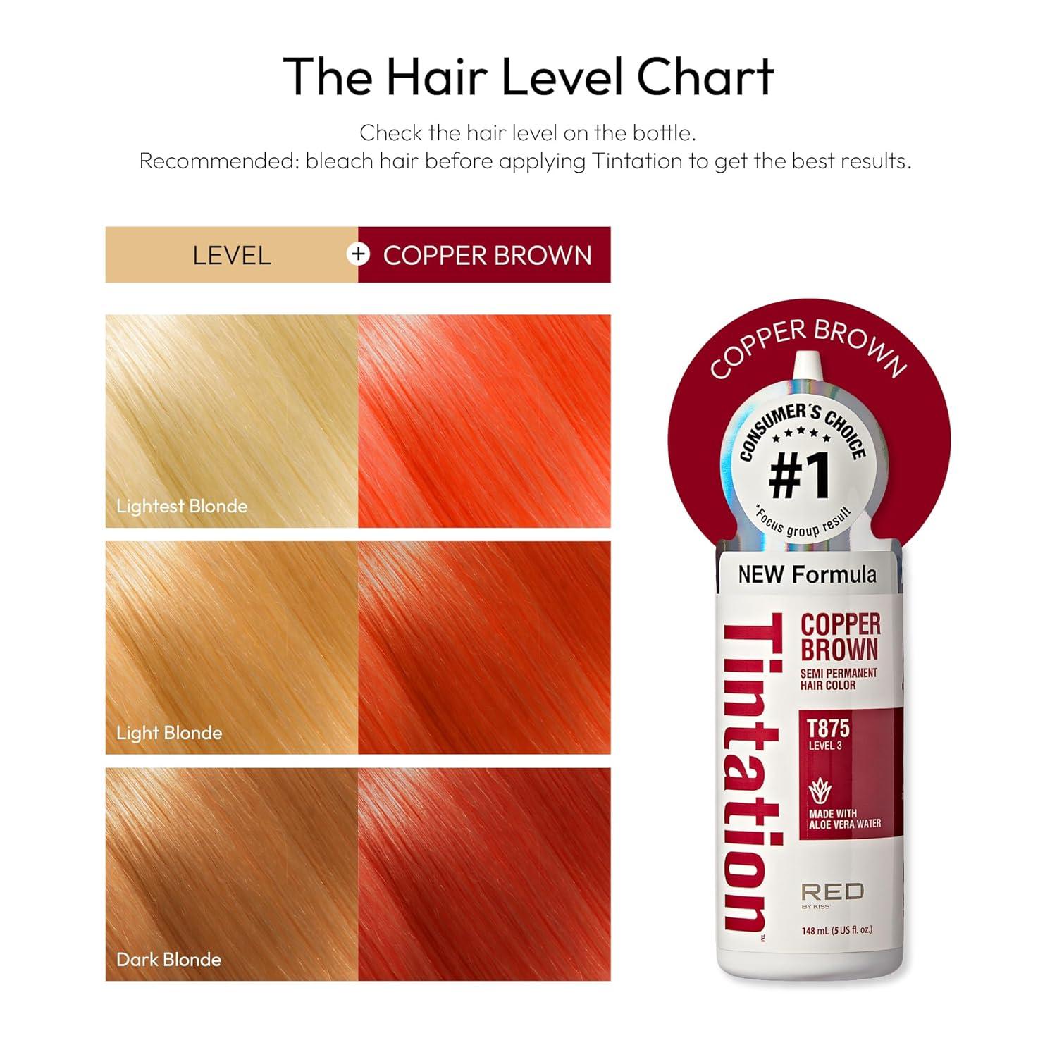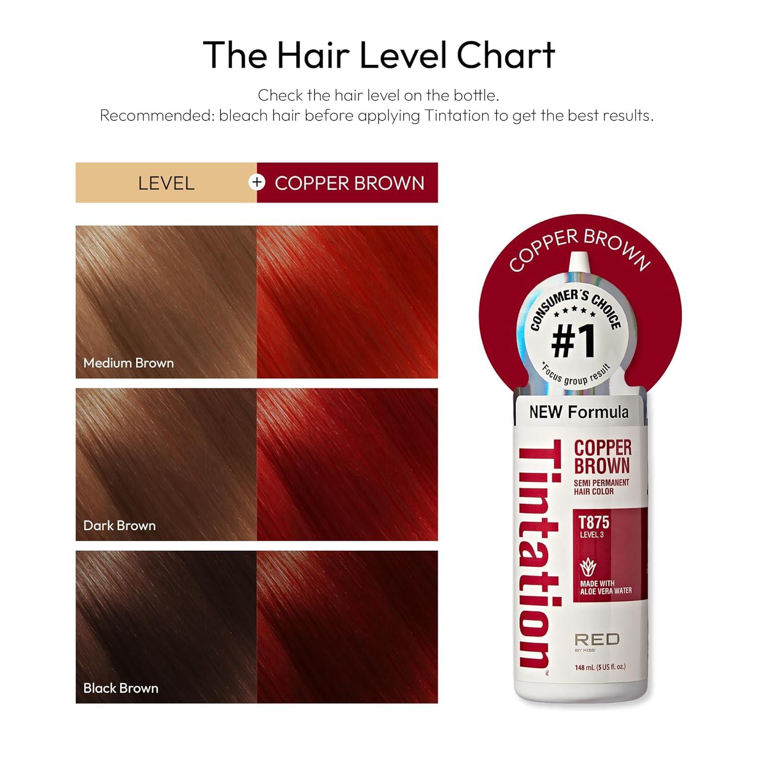 Red by Kiss Tintation Semi-Permanent Hair Color, Aloe Vera Water Based, Argan Oil, Olive Oil, Collagen & Keratin, Long-Lasting Color Dye (Cherry Red, 5 Fl Oz)(Copper Brown)