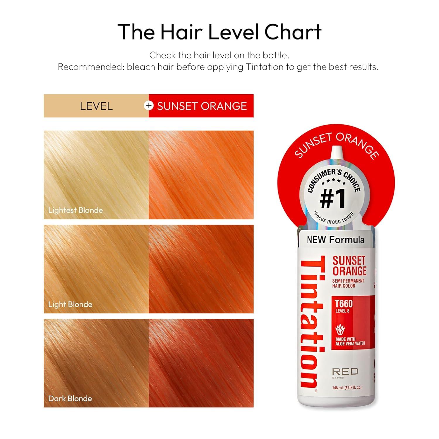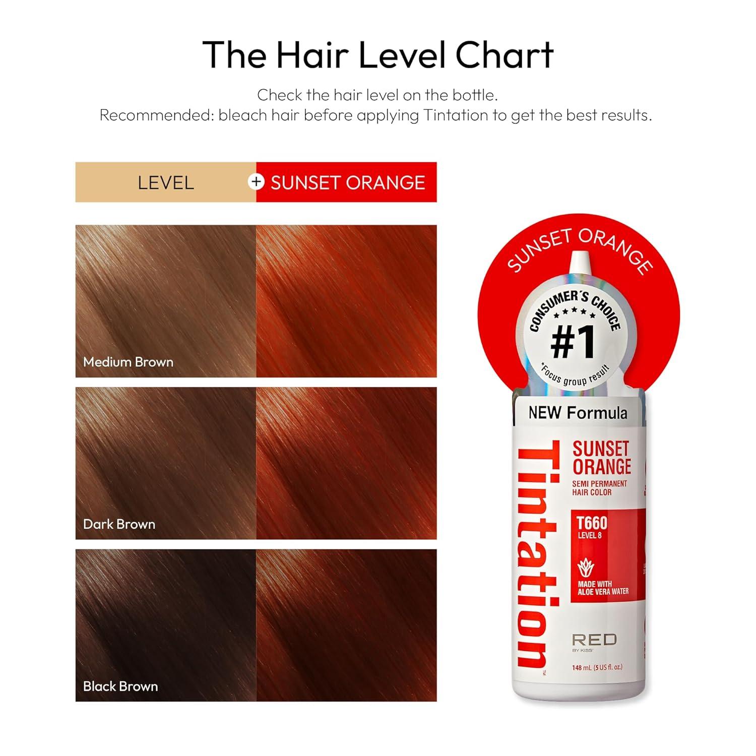 Red by Kiss Tintation Semi-Permanent Hair Color, Aloe Vera Water Based, Argan Oil, Olive Oil, Collagen & Keratin, Long-Lasting Color Dye (Cherry Red, 5 Fl Oz)(Sunset Orange)
