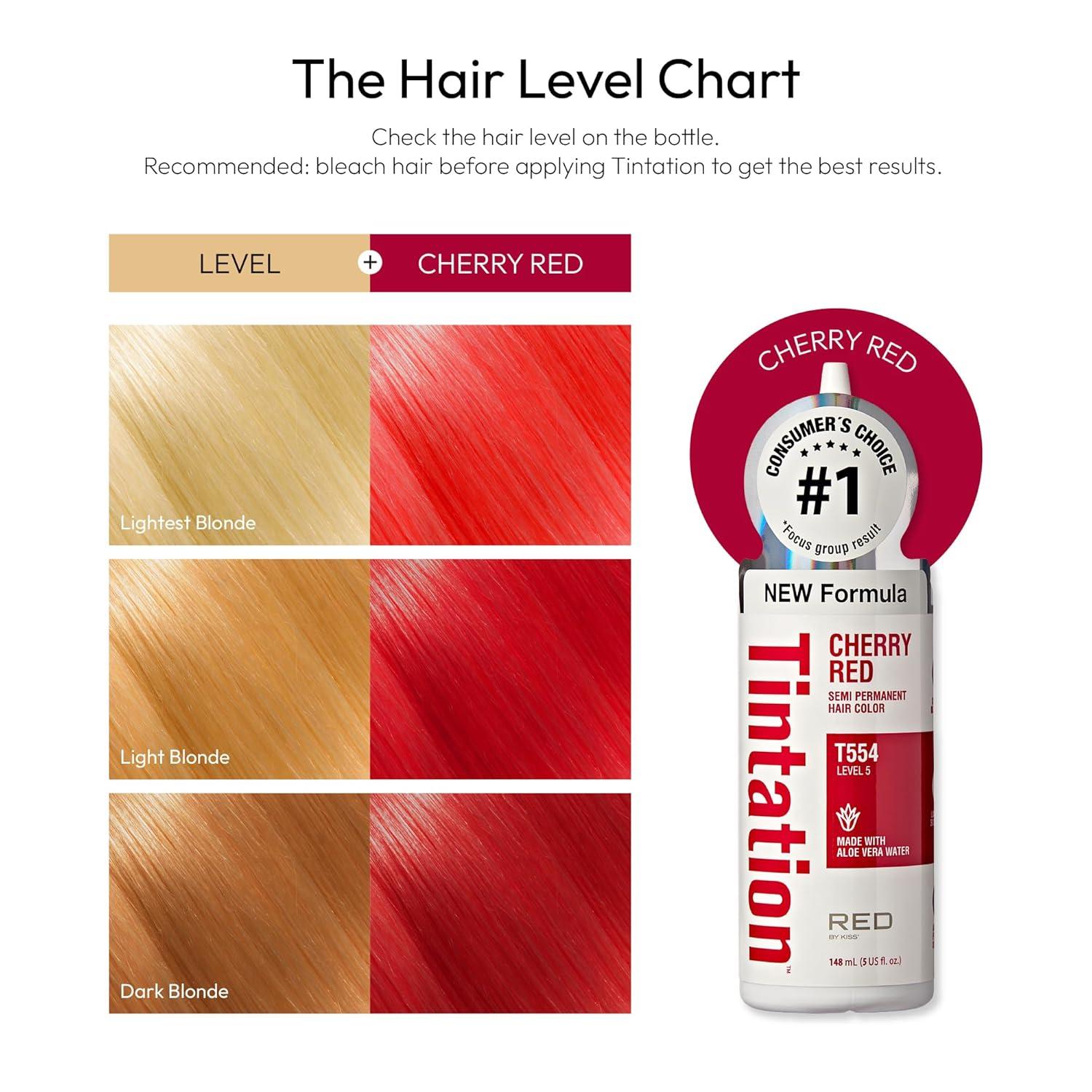 Red by Kiss Tintation Semi-Permanent Hair Color, Aloe Vera Water Based, Argan Oil, Olive Oil, Collagen & Keratin, Long-Lasting Color Dye (Cherry Red, 5 Fl Oz)(Cherry Red)