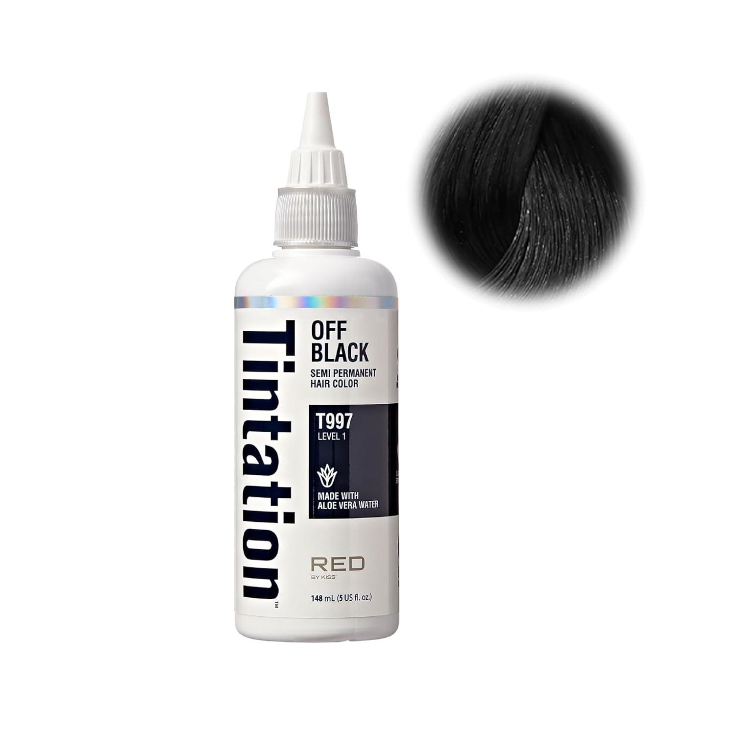 Red by Kiss Tintation Semi-Permanent Hair Color, Aloe Vera Water Based, Argan Oil, Olive Oil, Collagen & Keratin, Long-Lasting Color Dye (Cherry Red, 5 Fl Oz)(Off Black)