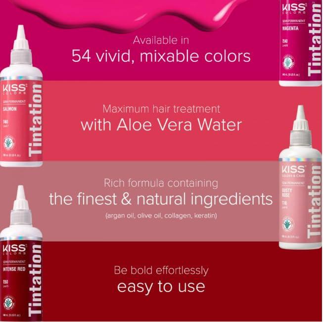 Red by Kiss Tintation Semi-Permanent Hair Color, Aloe Vera Water Based, Argan Oil, Olive Oil, Collagen & Keratin, Long-Lasting Color Dye (Clear, 5 Fl Oz)