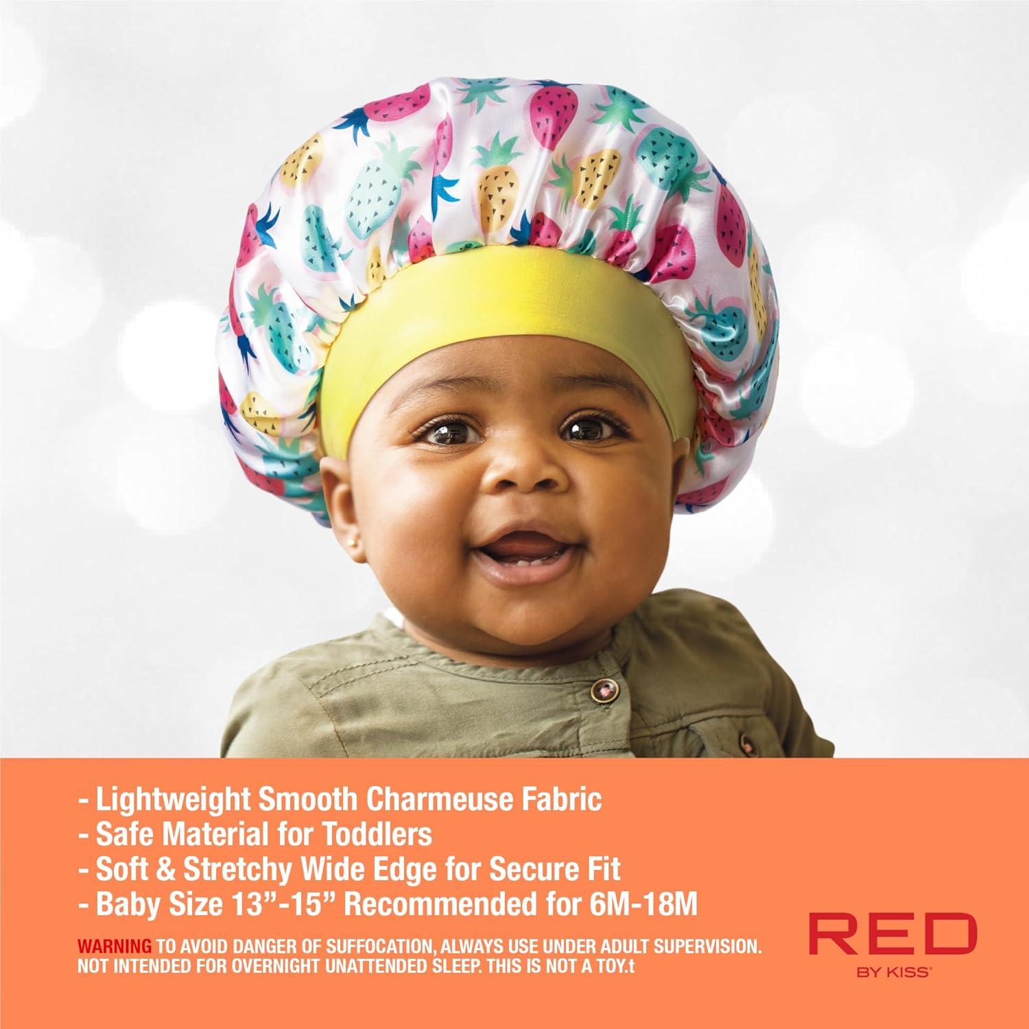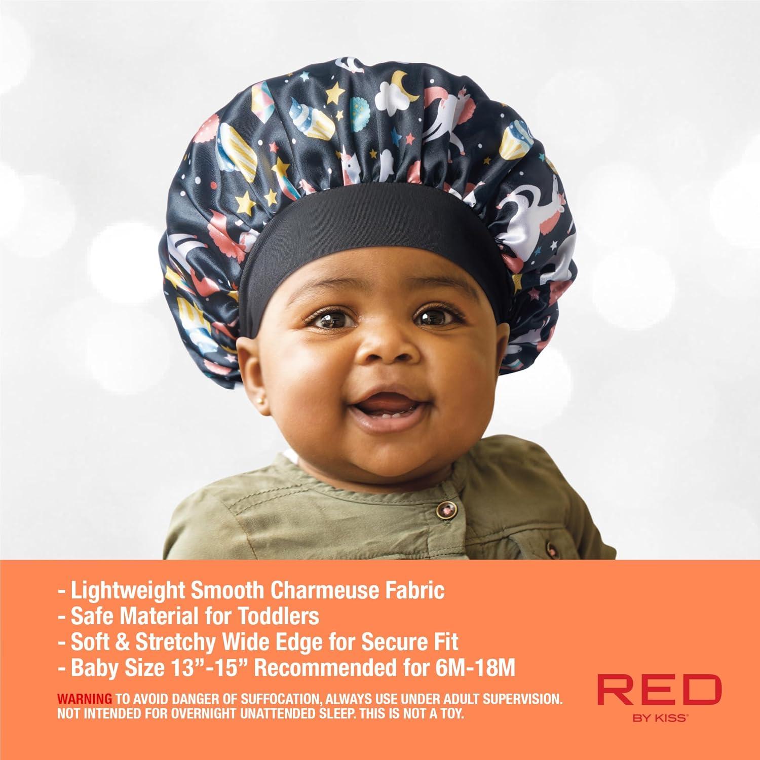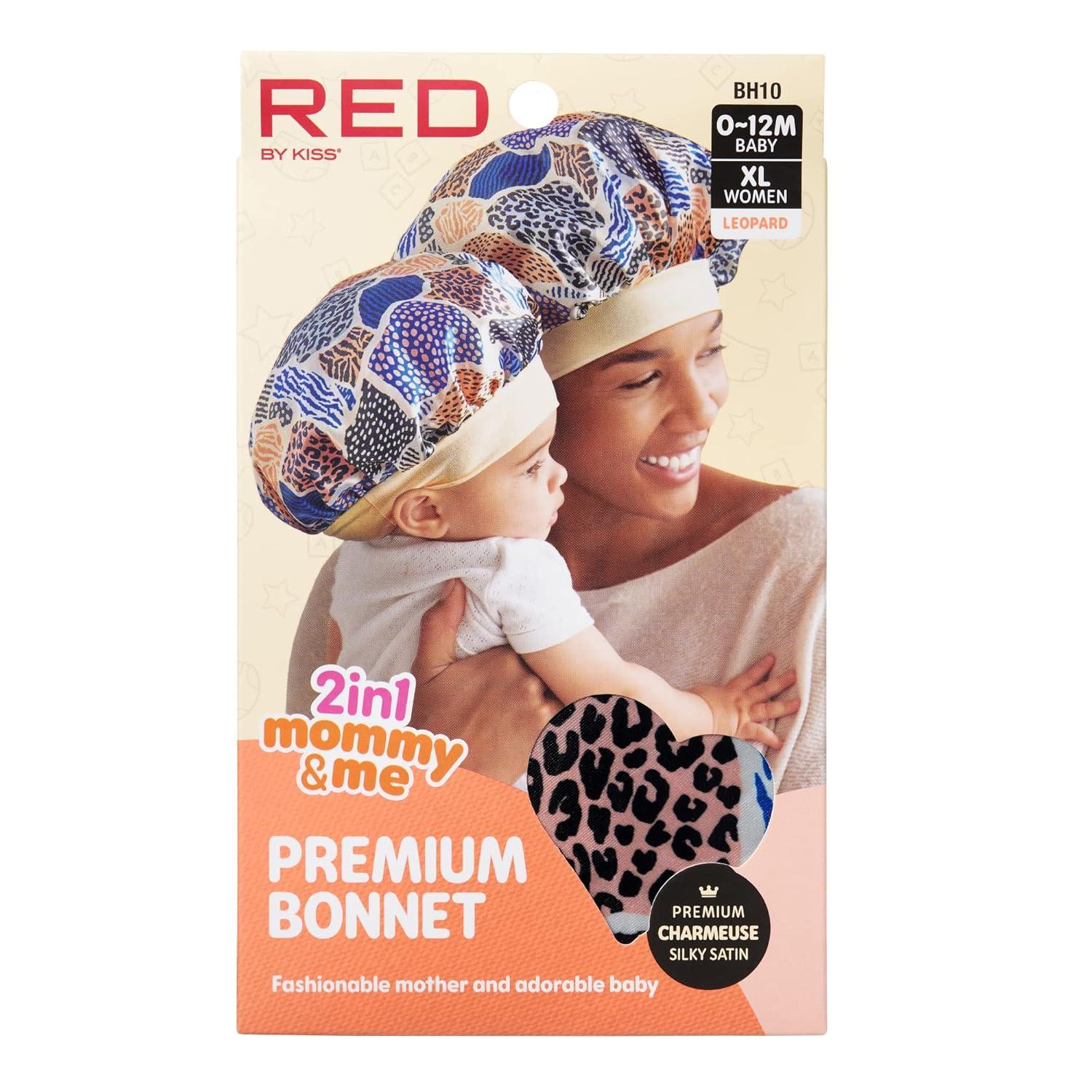 Red by Kiss 2-in-1 Mommy & Me Satin Bonnet Sleep Cap for Adult and Babies, Soft, Stretchy, and Safe, Protects Fragile Hair from Frizz & Breakage, Friction Bald Spots (Cheetah, 6-18M)(Cheetah)