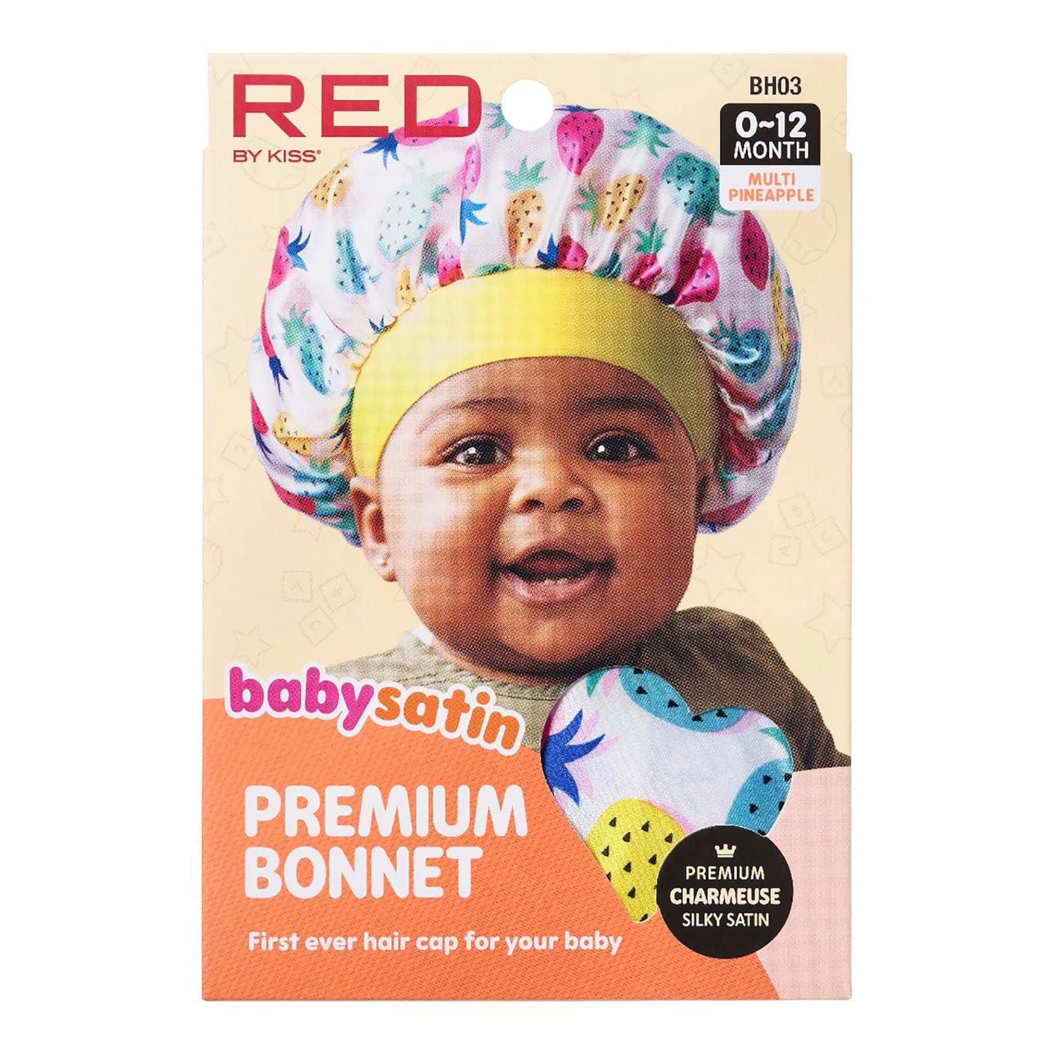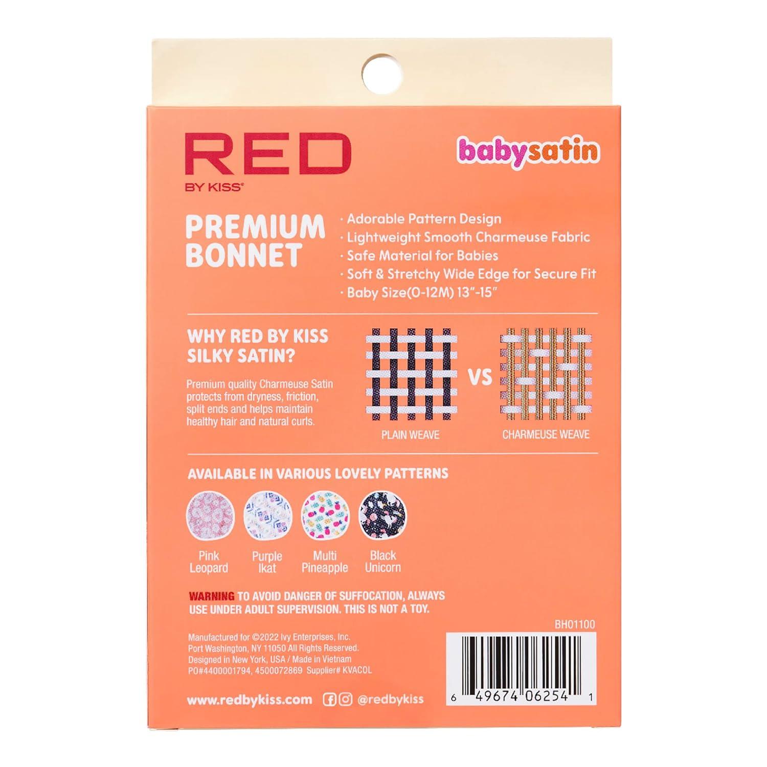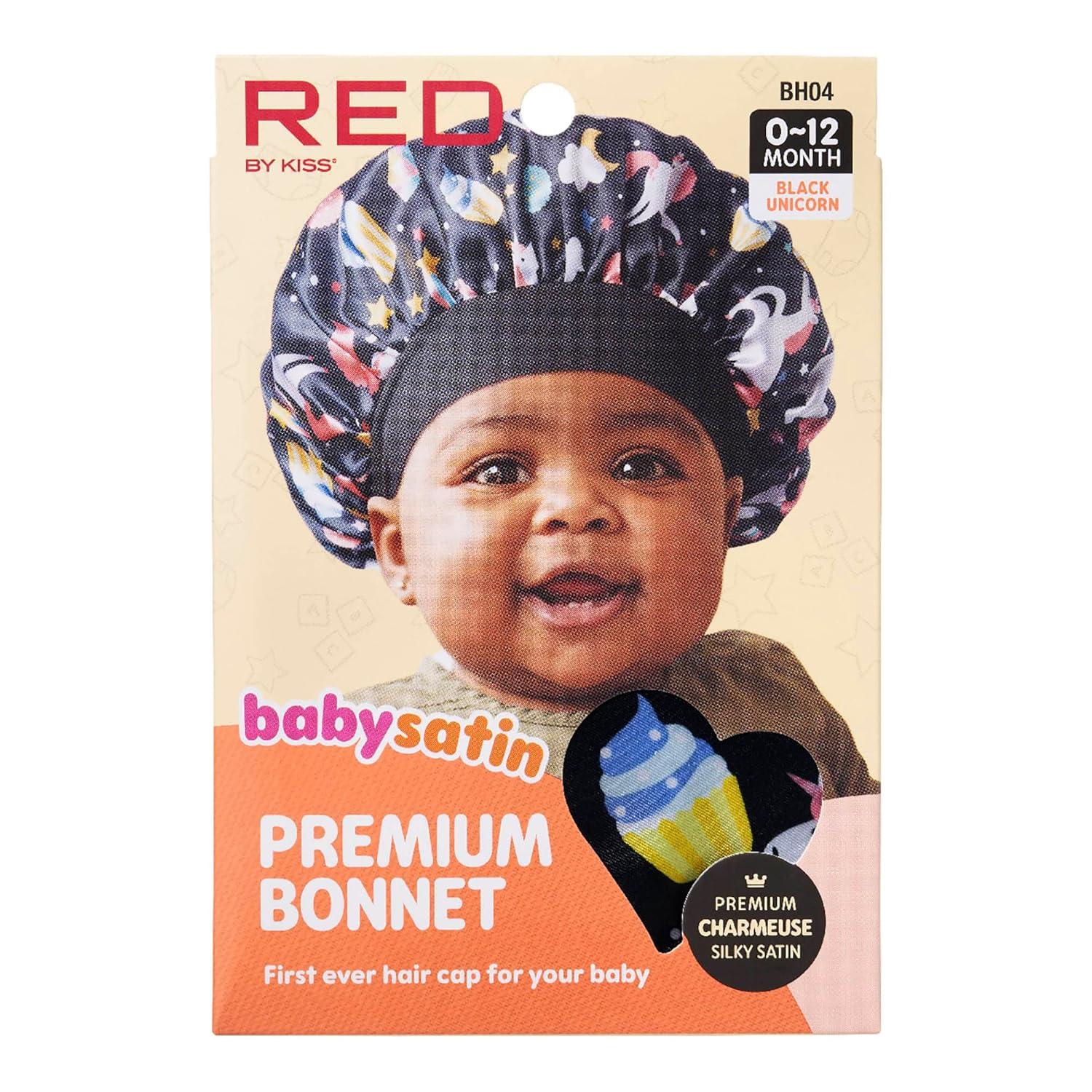 Red by Kiss 2-in-1 Mommy & Me Satin Bonnet Sleep Cap for Adult and Babies, Soft, Stretchy, and Safe, Protects Fragile Hair from Frizz & Breakage, Friction Bald Spots (Cheetah, 6-18M)(Cheetah)