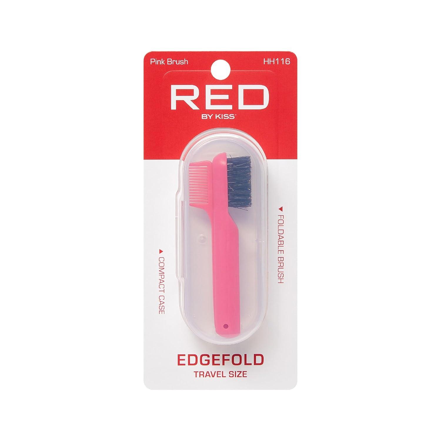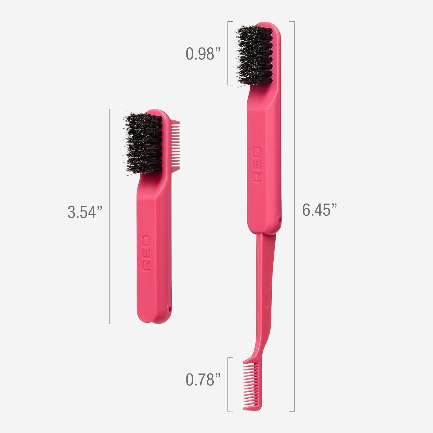 Red by Kiss 2-in-1 Foldable Comb & Edge Brush with Travel Case, Compact Palm-Sized Design, 100% Soft Boar Bristles for Smooth Hair & Edge Control, Portable Hair Styling Tool (Pink)(Pink)