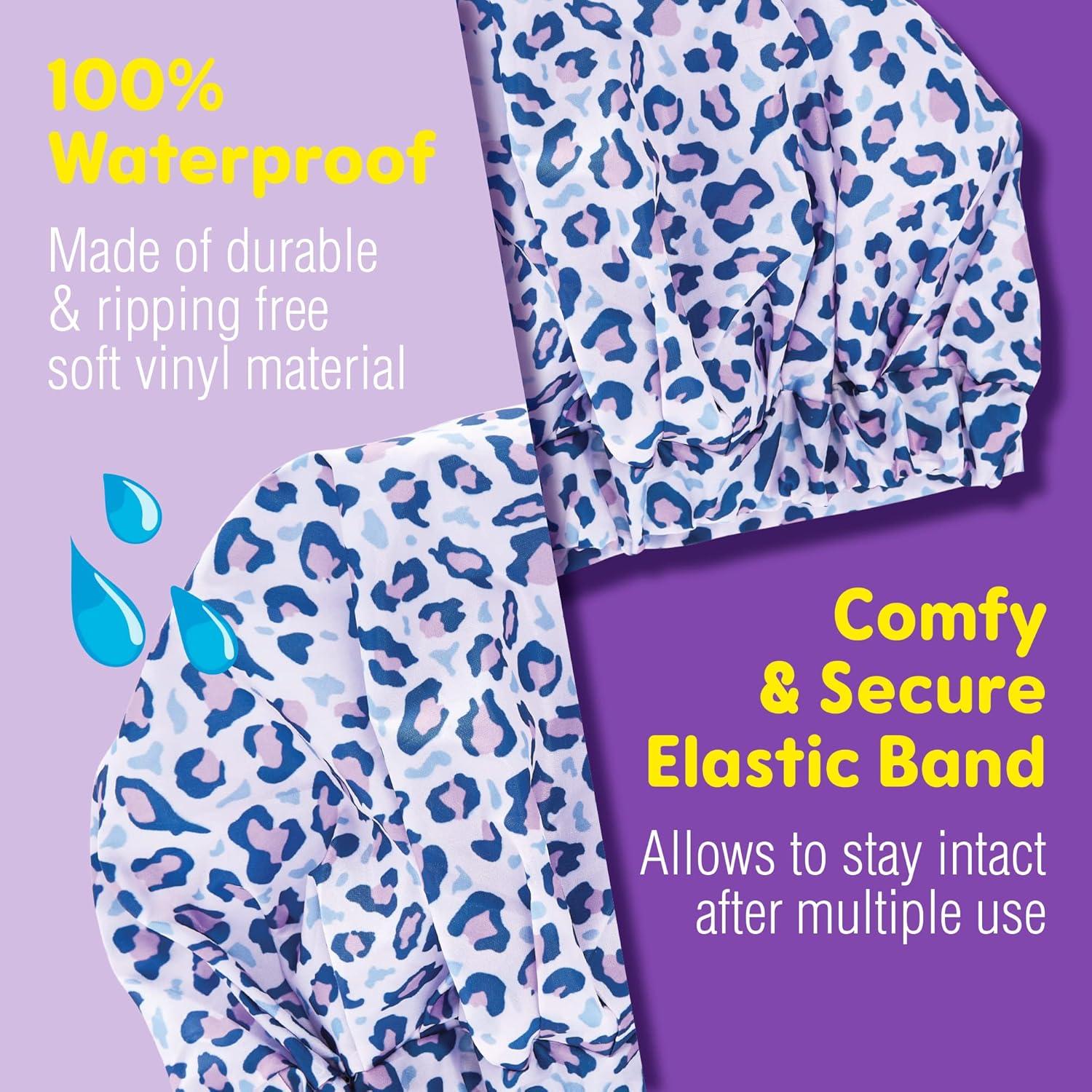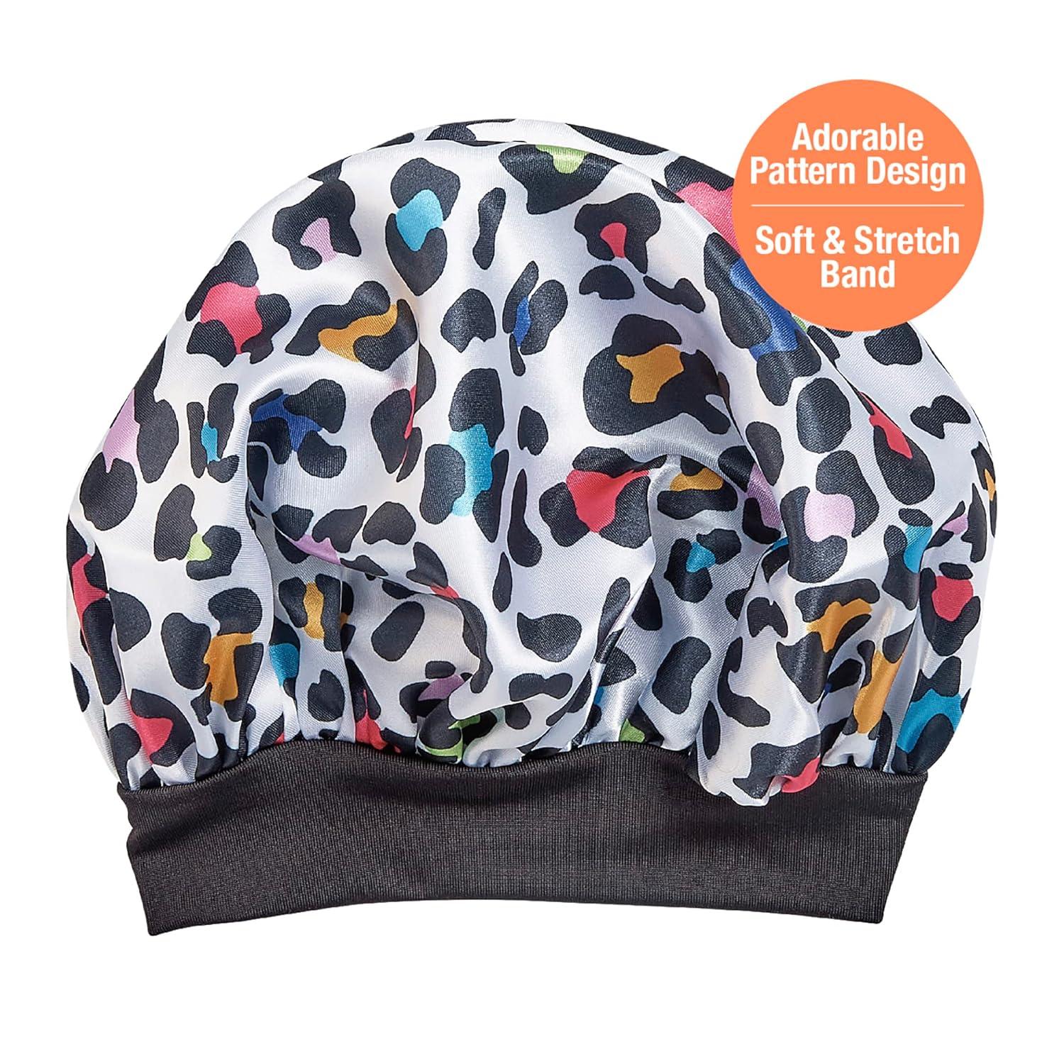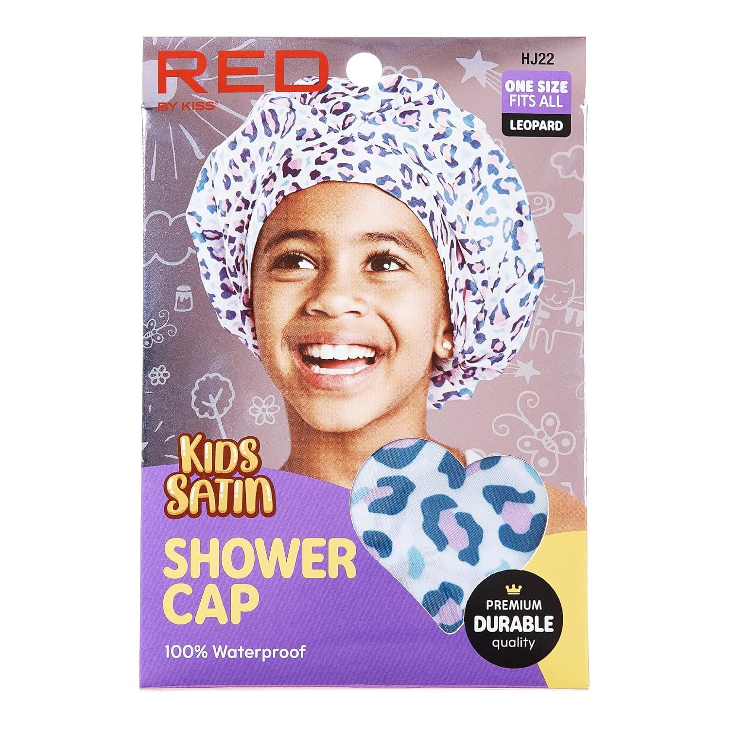 Red by Kiss Kids Shower Cap Reusable Waterproof Washable Hair Caps for Kids Shower Caps for Boys and Girls (Leopard)(Leopard)