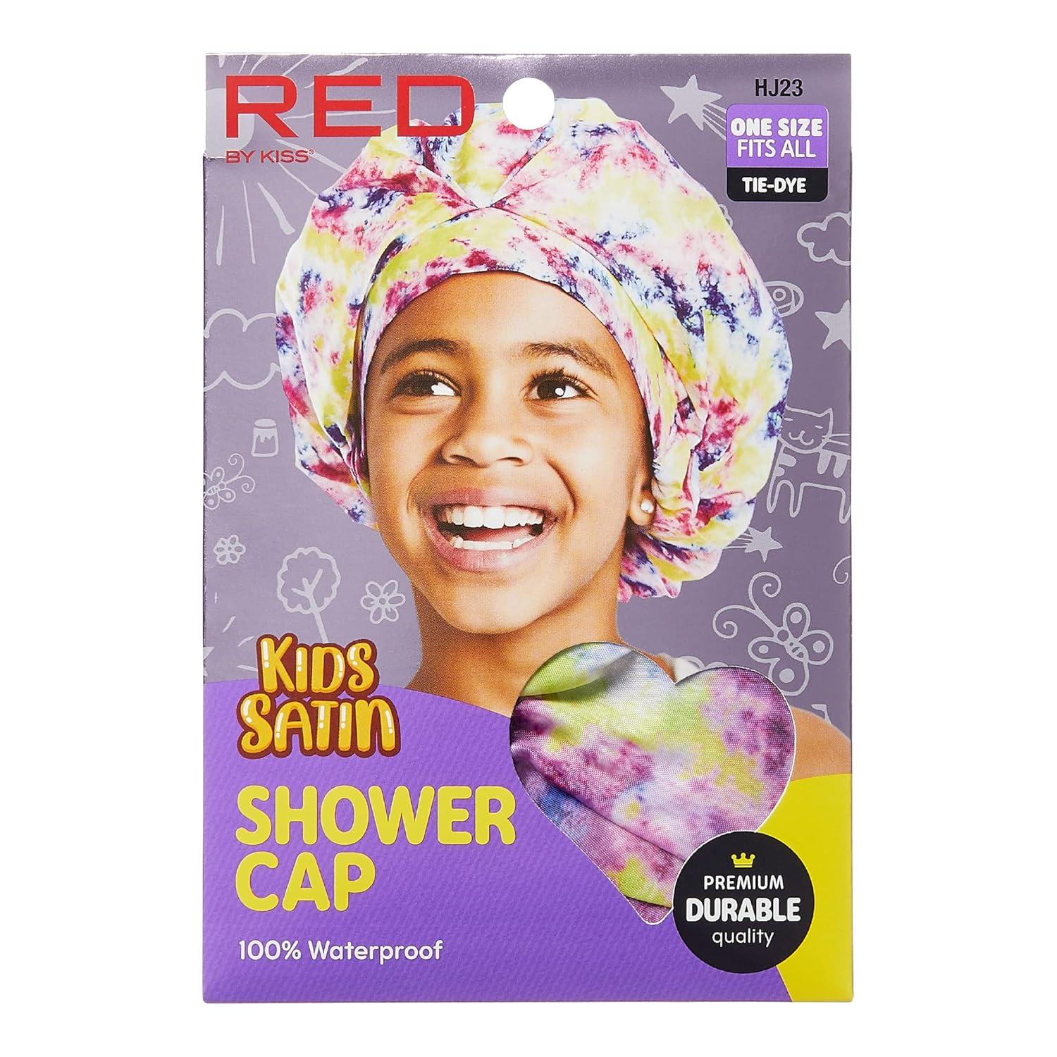 Red by Kiss Kids Shower Cap Reusable Waterproof Washable Hair Caps for Kids Shower Caps for Boys and Girls (Leopard)(Tie-Dye)