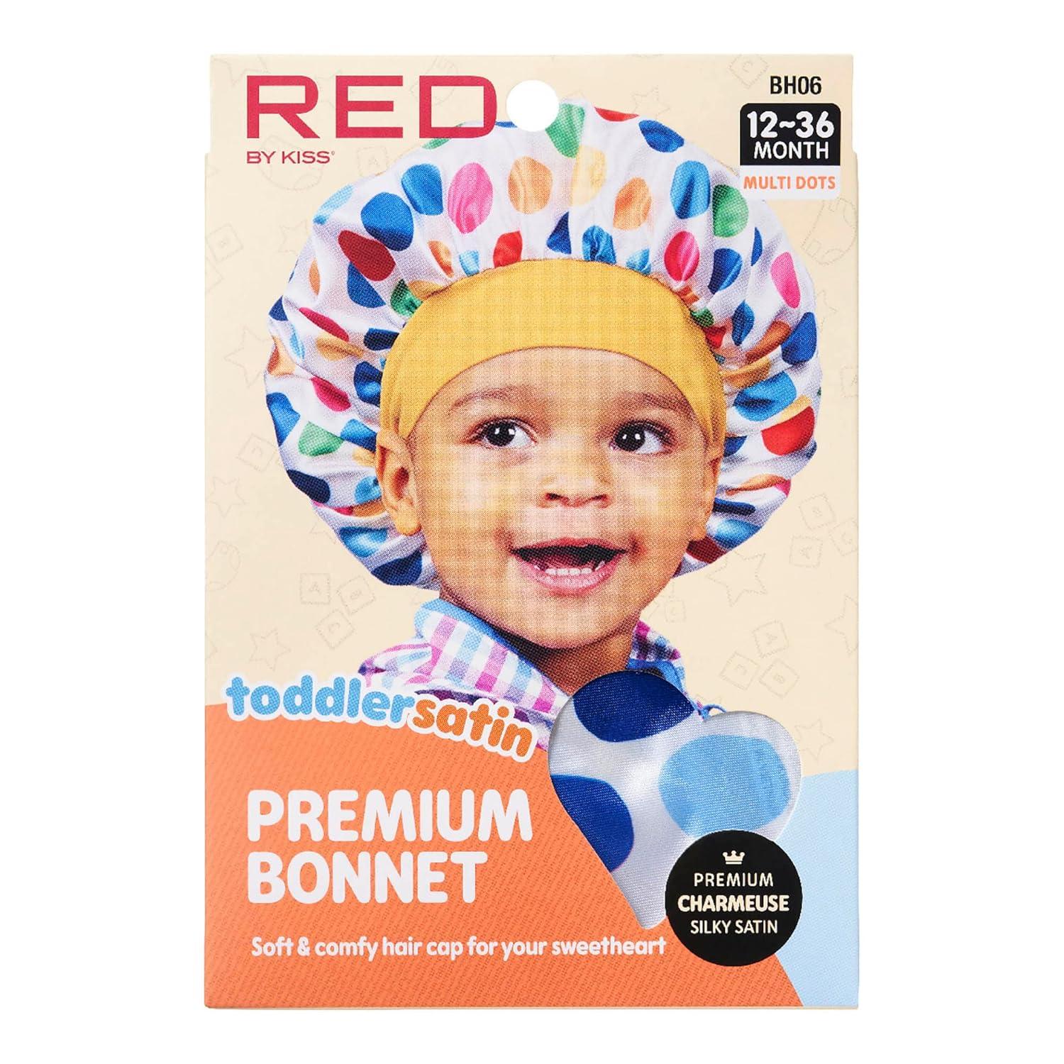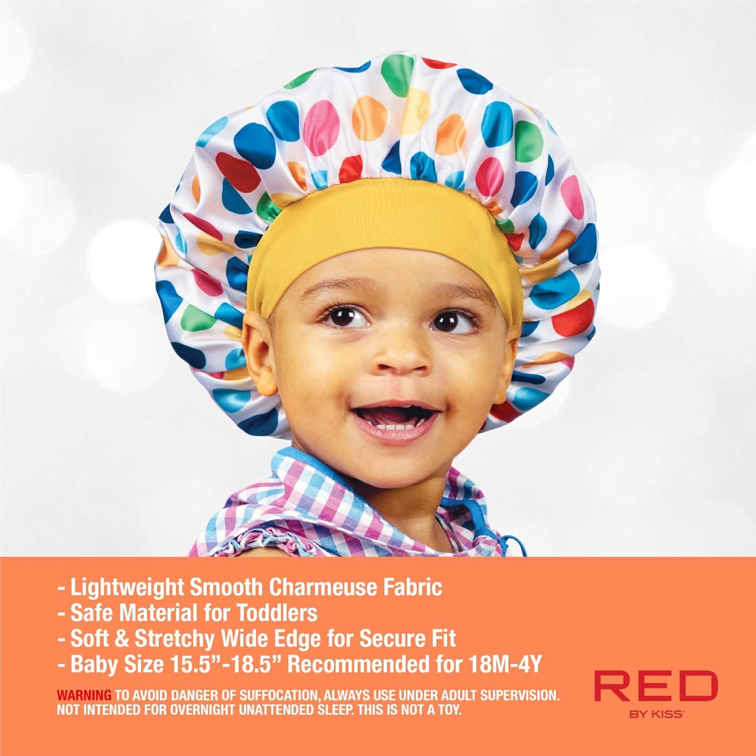 Red by Kiss Kids Satin Bonnet Sleep Cap Reversible Hair Bonnet for Boys and Girls Sleeping Night Silk Sleep Cap (Heart) Multi Color(Polka Dot)