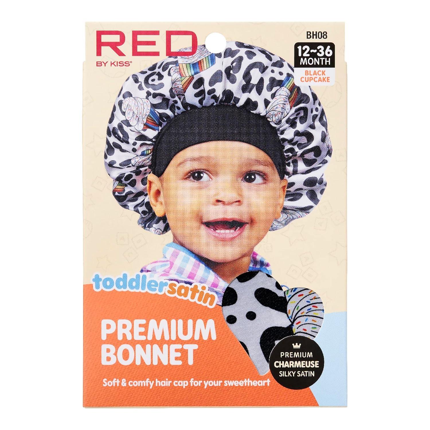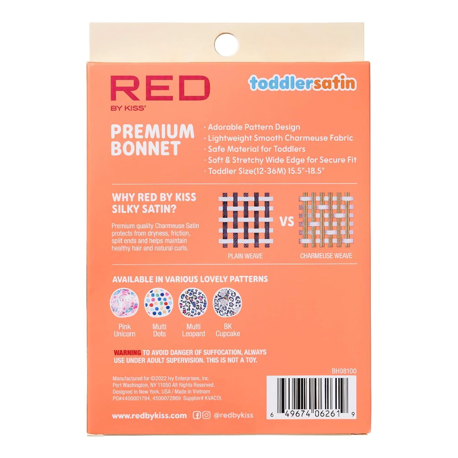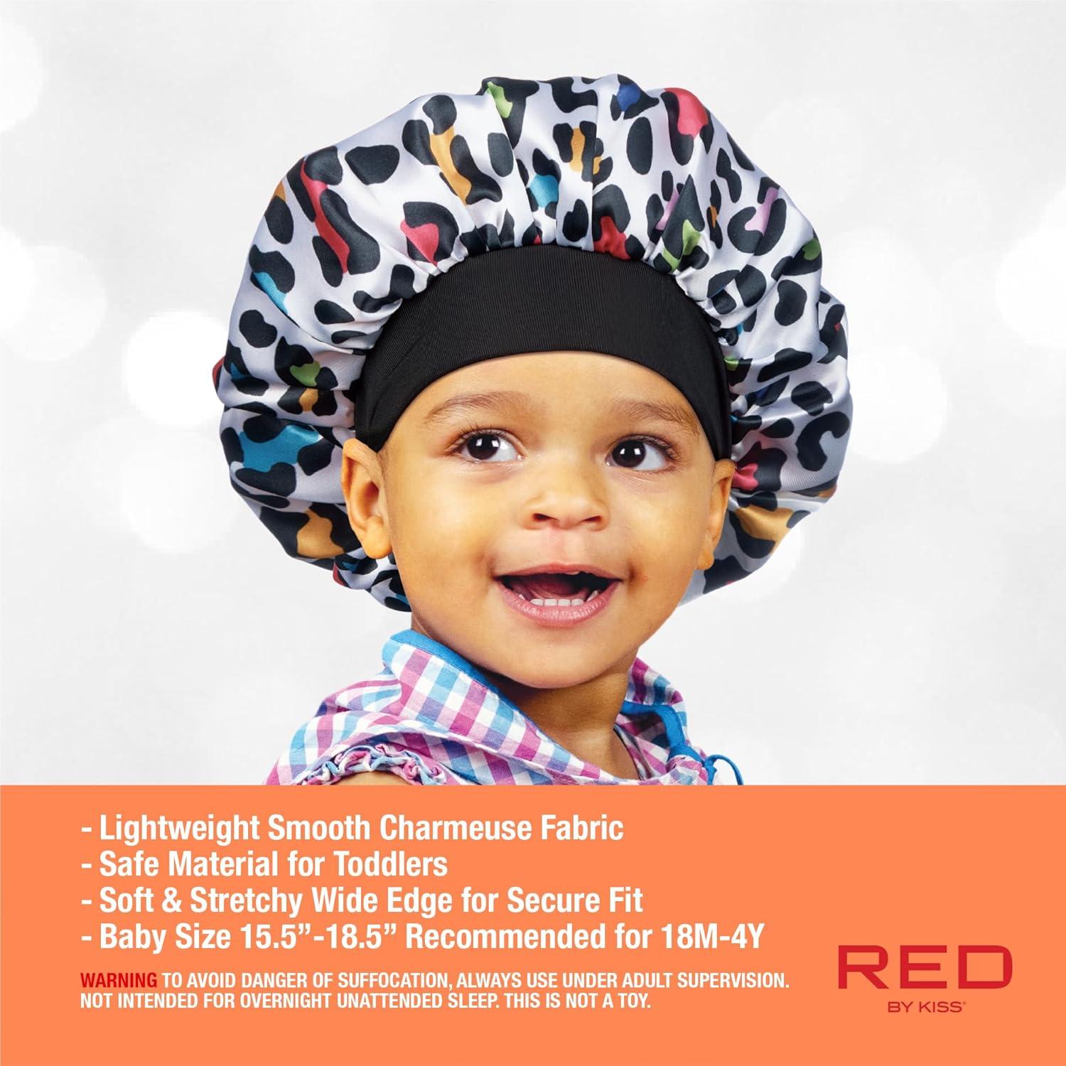 Red by Kiss 2-in-1 Mommy & Me Satin Bonnet Sleep Cap for Adult and Babies, Soft, Stretchy, and Safe, Protects Fragile Hair from Frizz & Breakage, Friction Bald Spots (Cheetah, 6-18M)(Cheetah)