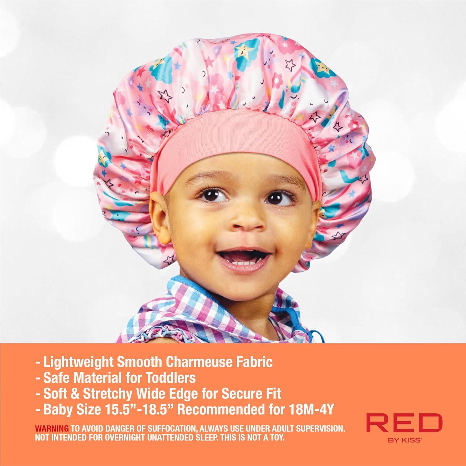 Red by Kiss Kids Satin Bonnet Sleep Cap Reversible Hair Bonnet for Boys and Girls Sleeping Night Silk Sleep Cap (Heart) Multi Color(Heart)
