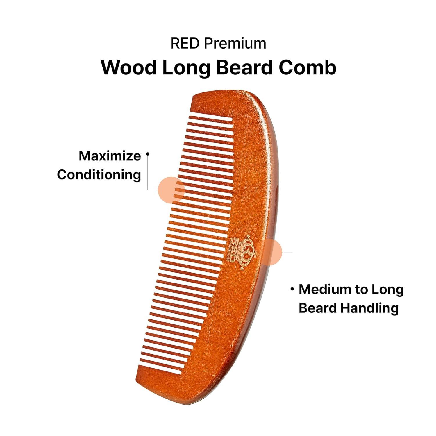 RED by Kiss Premium Wood Men Long Beard Comb, Easy Detangling and Styling, Durable Design for Gentle Beard Hair & Mustache Grooming Essential, No Snagging & Pulling, Maximize Conditioning(Stainless Steel Shear)