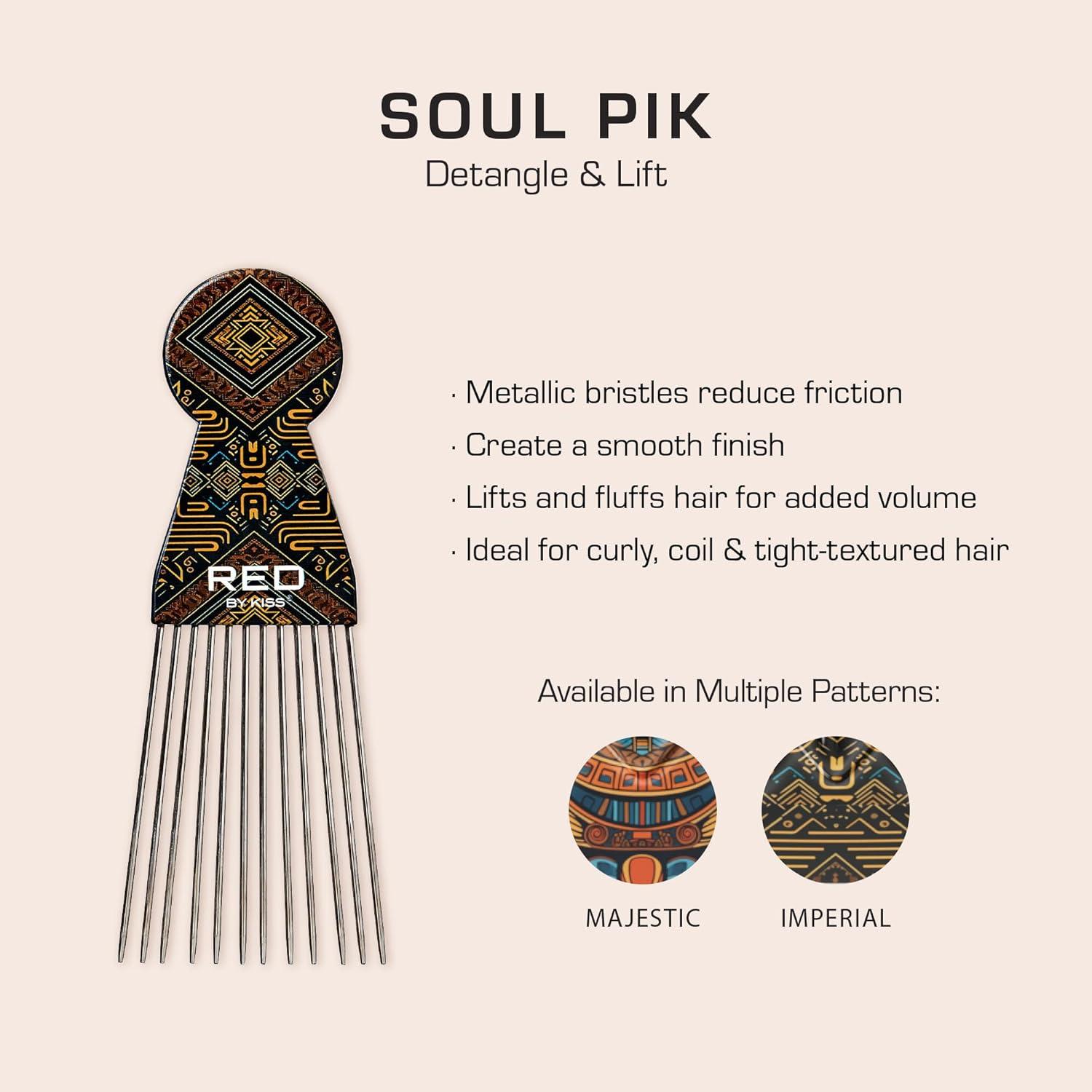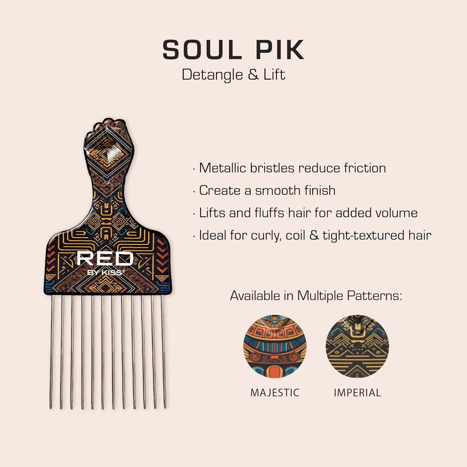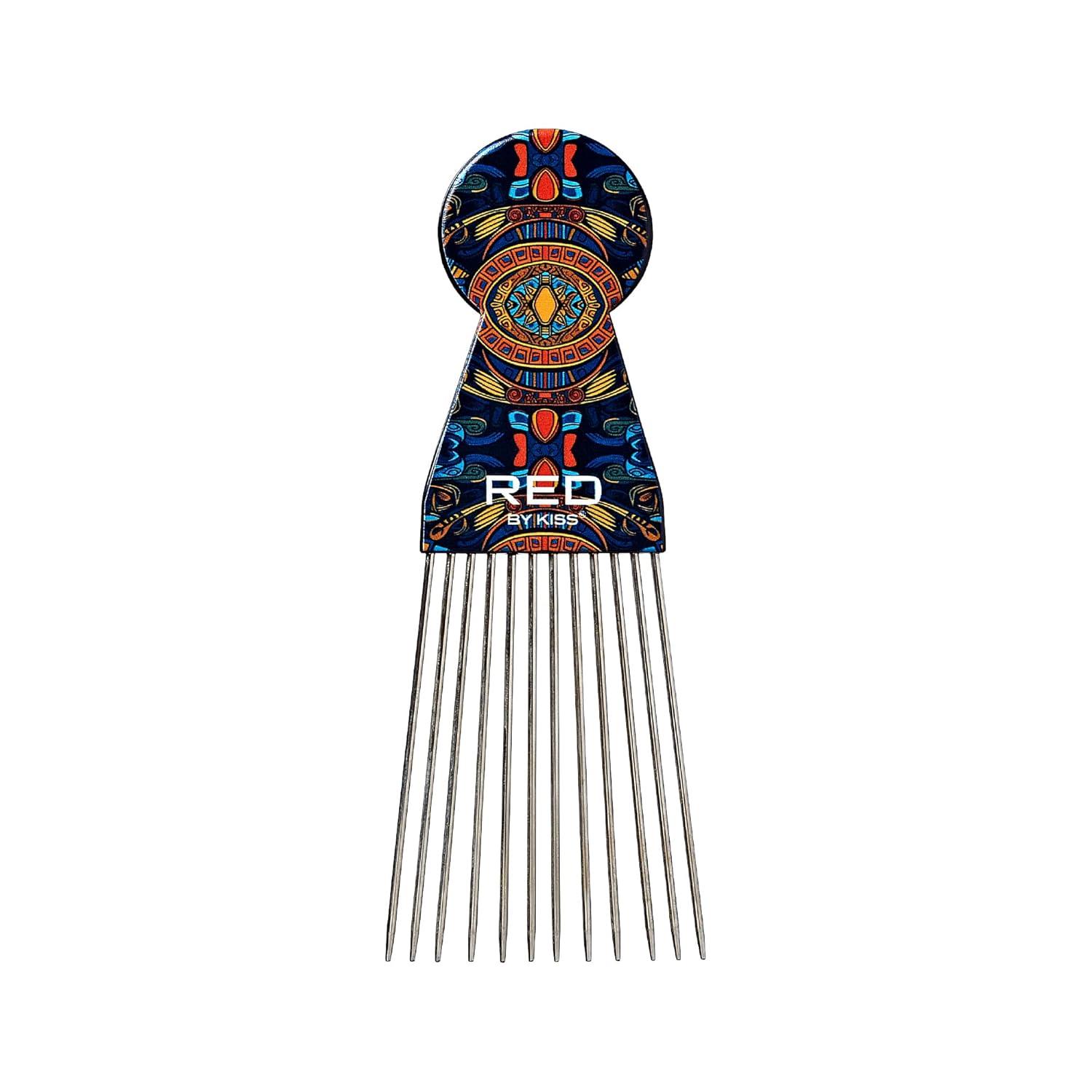Red by Kiss Soul Pik Afro Comb, Scalp-Safe Skin Friendly Metal Teeth, For Curly & Straight Hair, Durable & Elegant Hairdressing Tool, Fashion Stylish for Daily Styling (Majestic Straight, Long)(Imperial Fan)