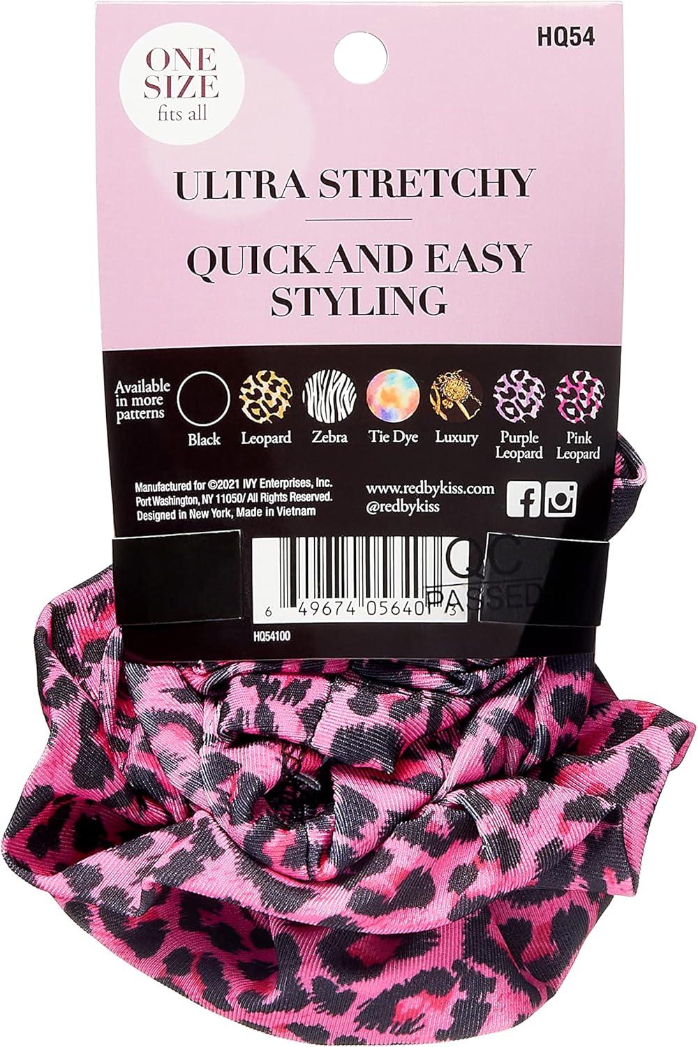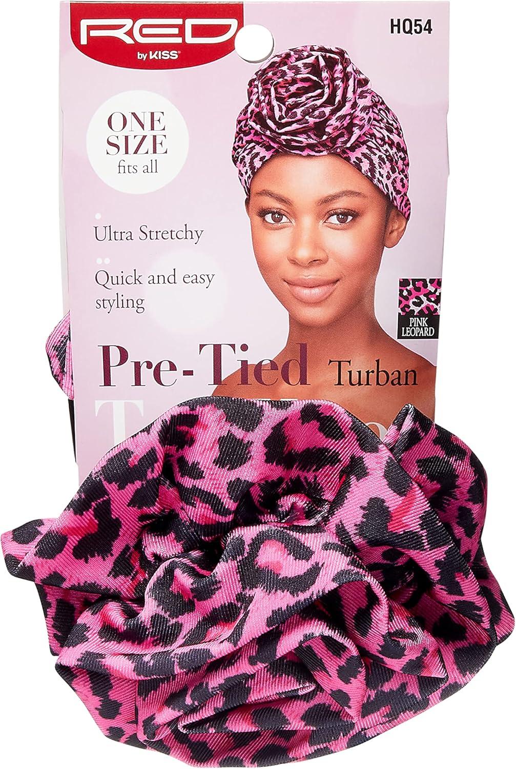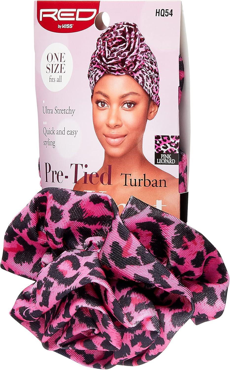 Red by Kiss Pre-Tied Top Turban Top Knot Turban Ultra Stretchy Headwrap Pre-Tied Bonnet Beanie Cap(Pink Leopard)