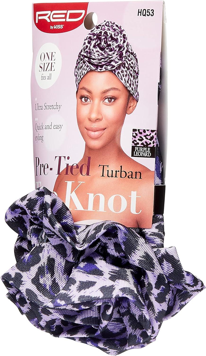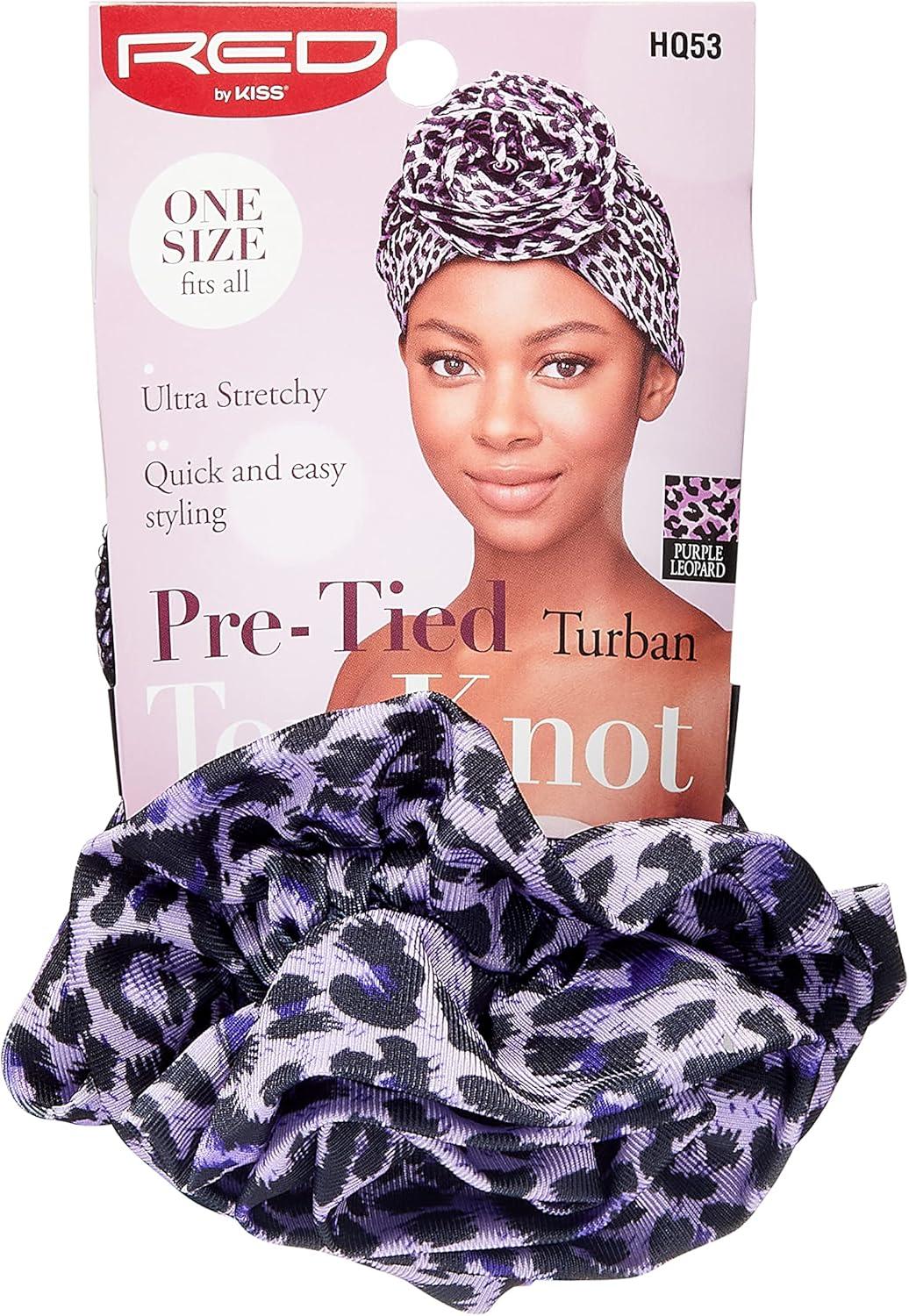 Red by Kiss Pre-Tied Top Turban Top Knot Turban Ultra Stretchy Headwrap Pre-Tied Bonnet Beanie Cap(Purple Leopard)