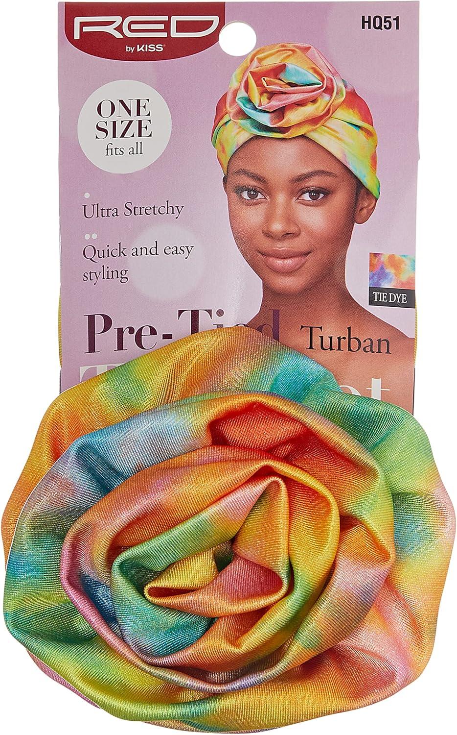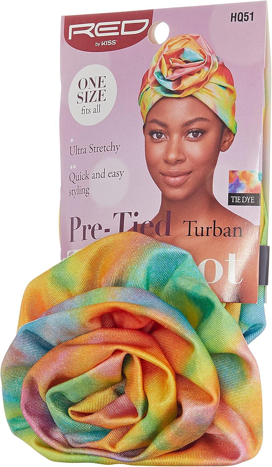 Red by Kiss Pre-Tied Top Turban Top Knot Turban Ultra Stretchy Headwrap Pre-Tied Bonnet Beanie Cap(Tie-Dye)