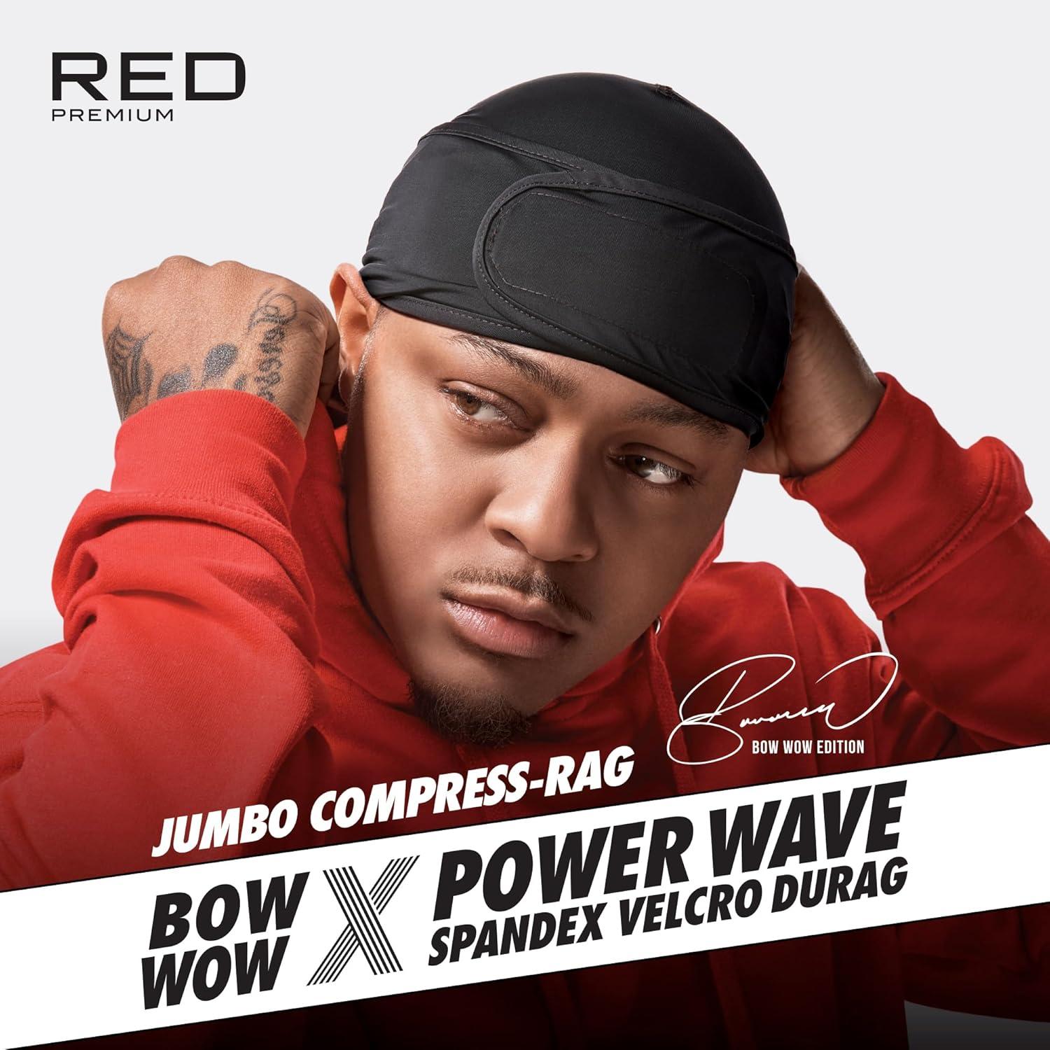 Red by Kiss Premium Bow Wow X Power Wave Durag, 360 Wave Compression Cap for Men & Women, Adjustable Hook-and-Loop Strap, Stylish & Durable, Ideal for Locs, Braids, Finger Waves (Spandex – Black)(Jumbo Spandex – Black)