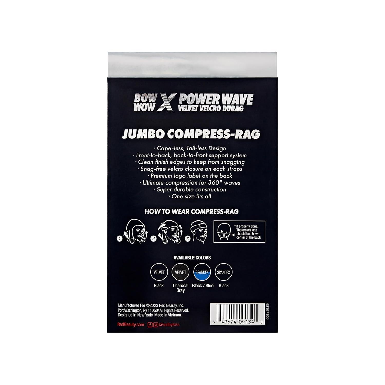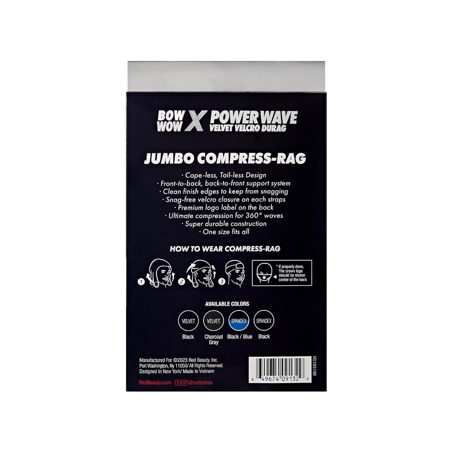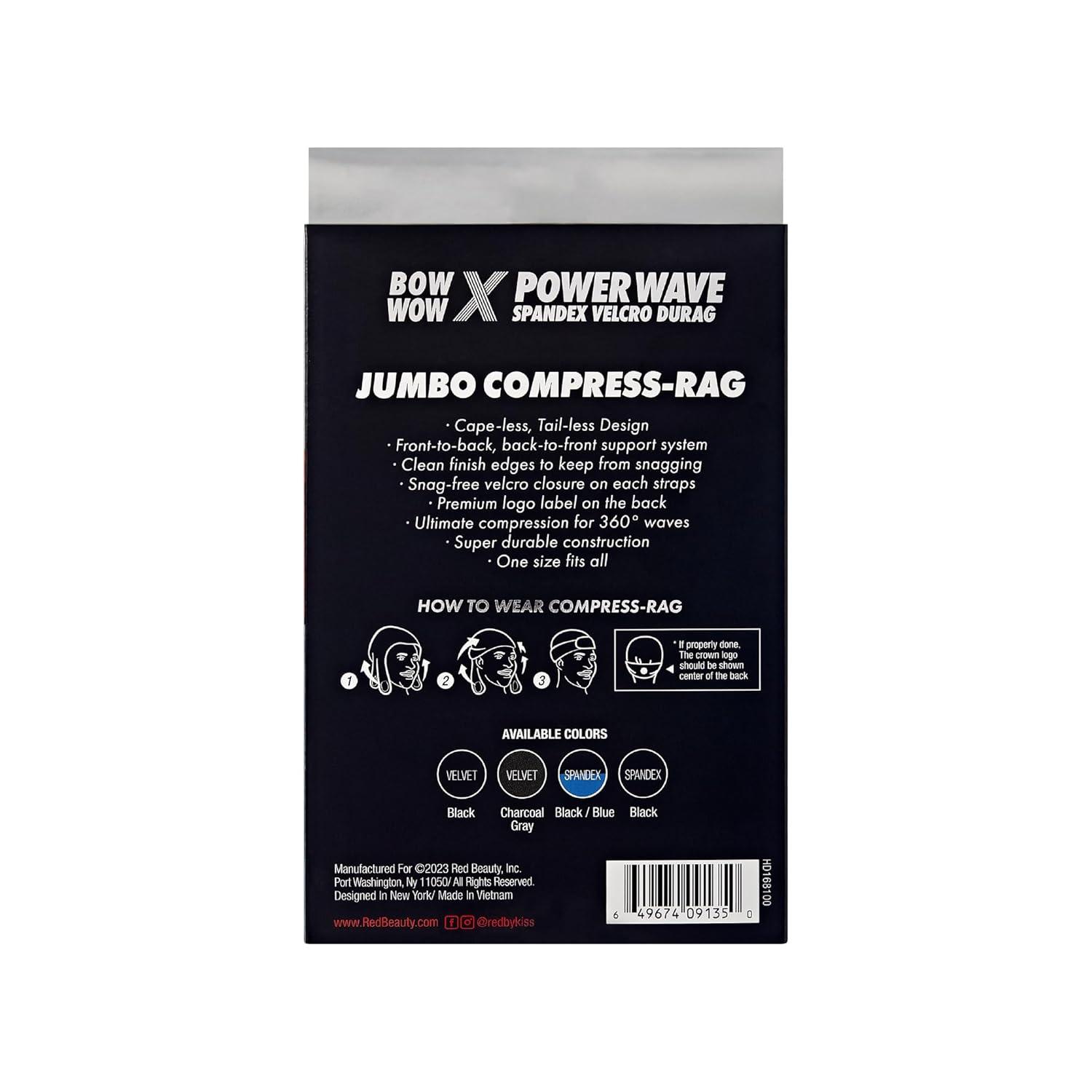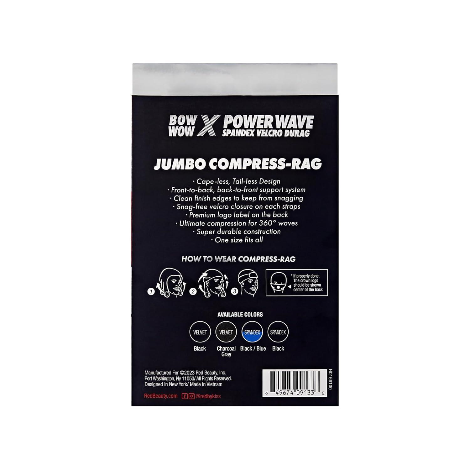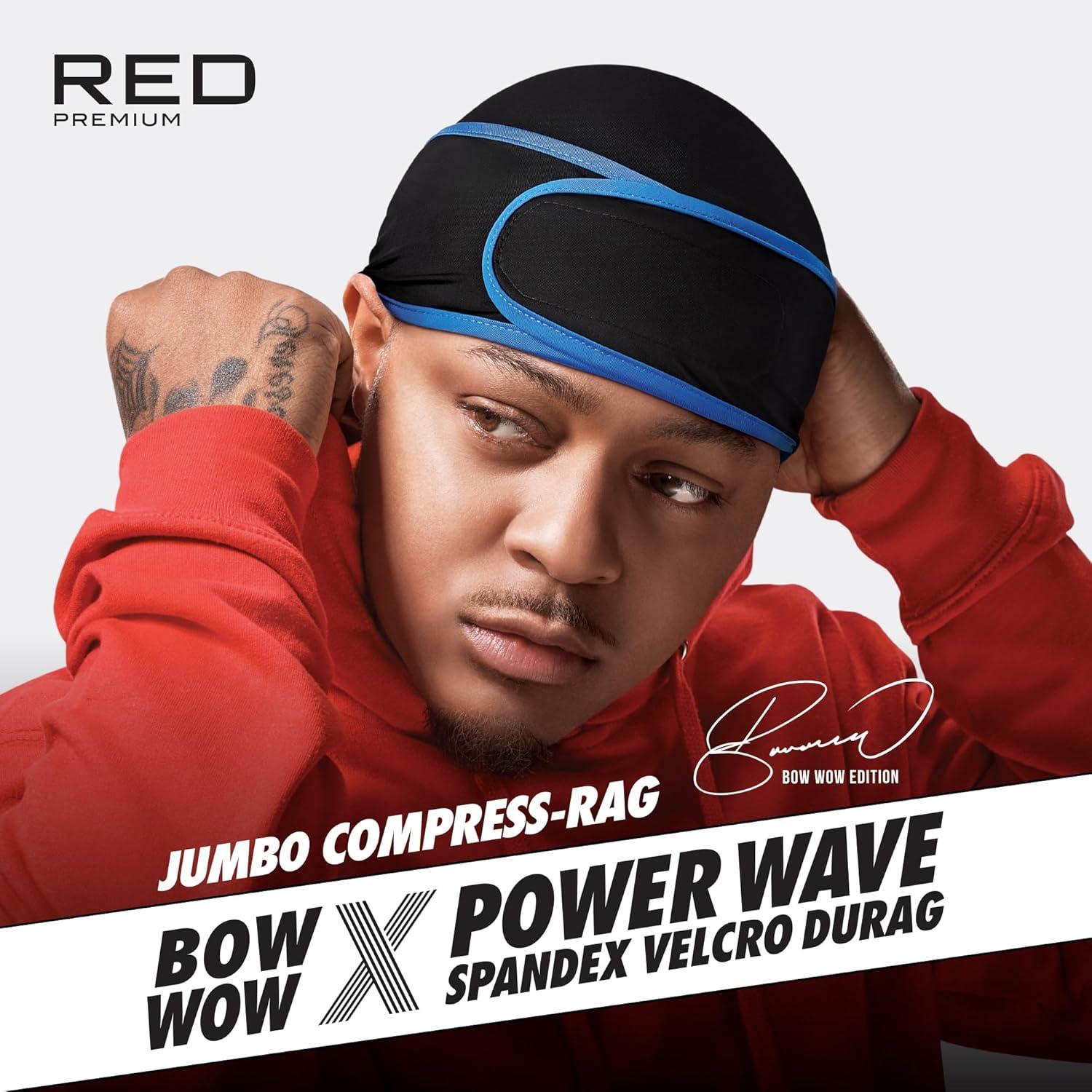 Red by Kiss Premium Bow Wow X Power Wave Durag, 360 Wave Compression Cap for Men & Women, Adjustable Hook-and-Loop Strap, Stylish & Durable, Ideal for Locs, Braids, Finger Waves (Spandex – Black)(Jumbo Spandex – Black/Blue)