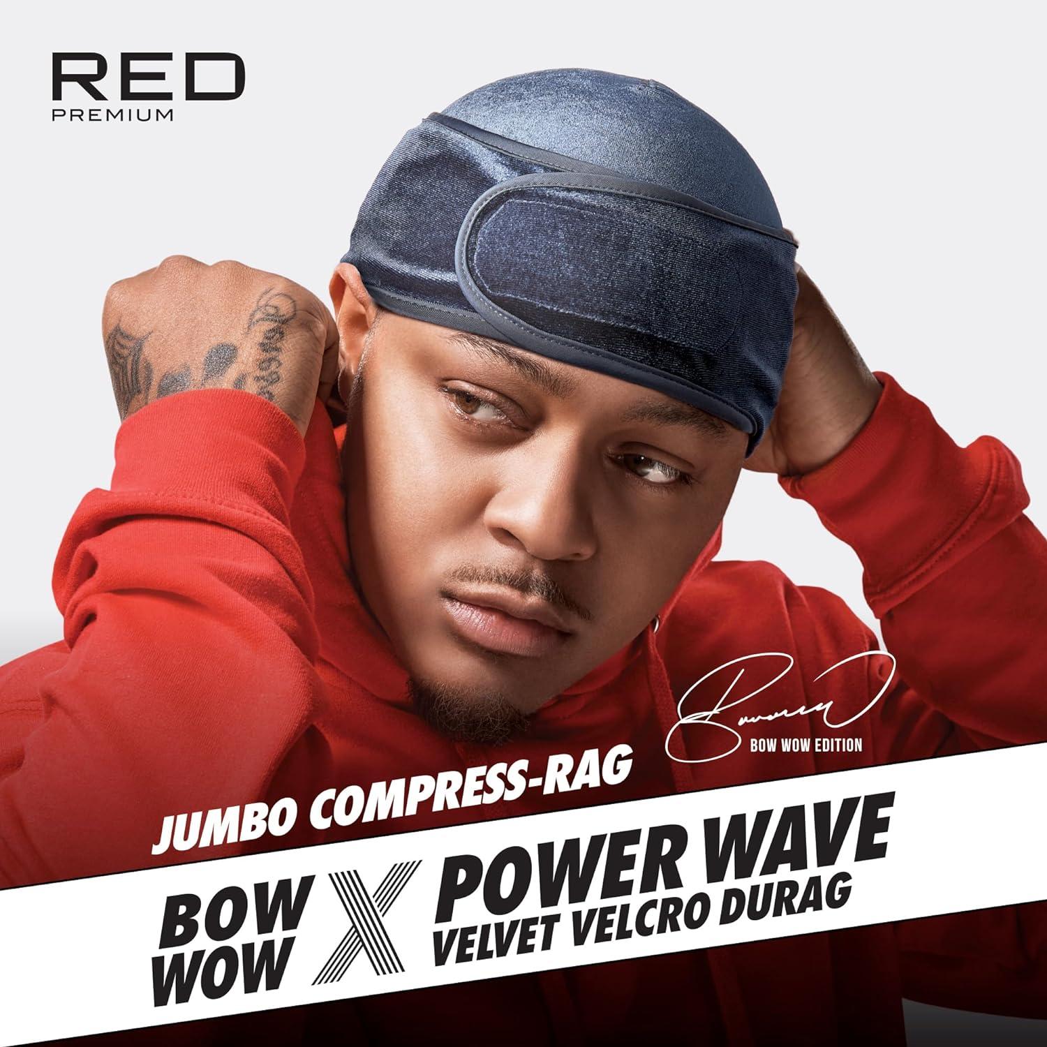 Red by Kiss Premium Bow Wow X Power Wave Durag, 360 Wave Compression Cap for Men & Women, Adjustable Hook-and-Loop Strap, Stylish & Durable, Ideal for Locs, Braids, Finger Waves (Spandex – Black)(Jumbo Velvet – Charcoal Gray)