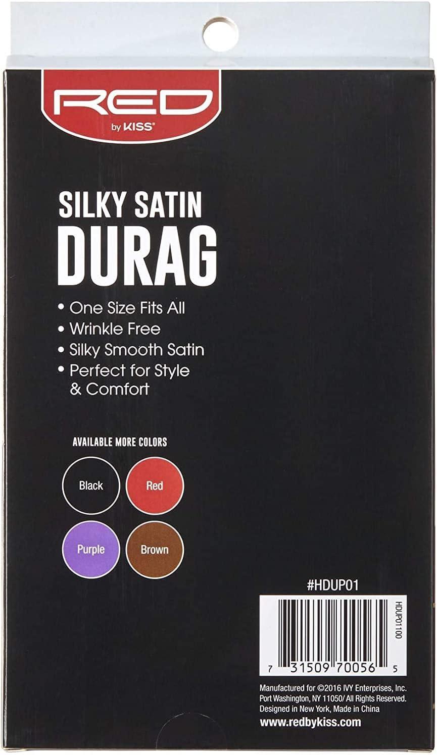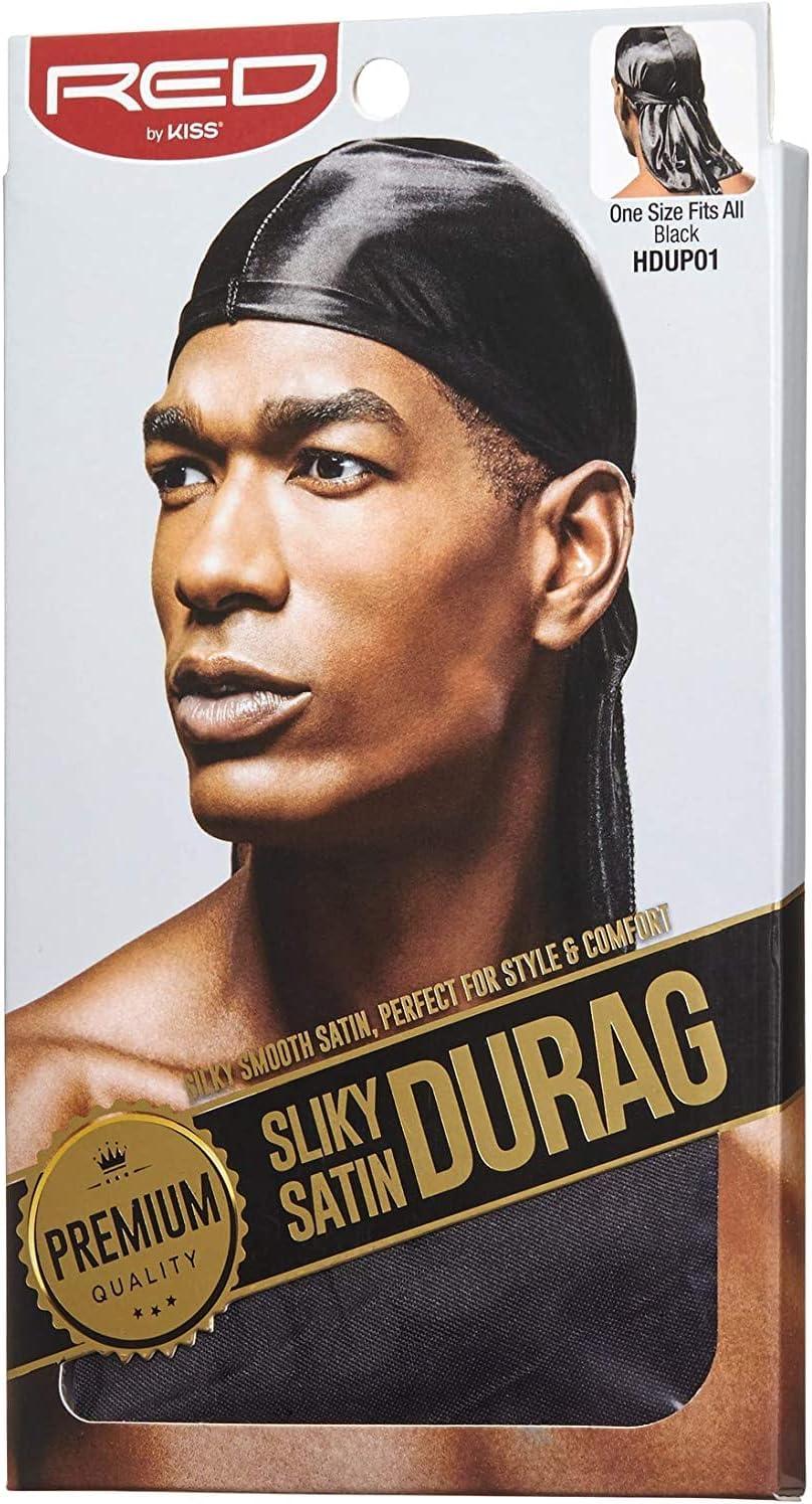 Red by Kiss Silky Satin Durag Premium Smooth Silky Durag for Men & Women 360 Waves Headwraps (Black)