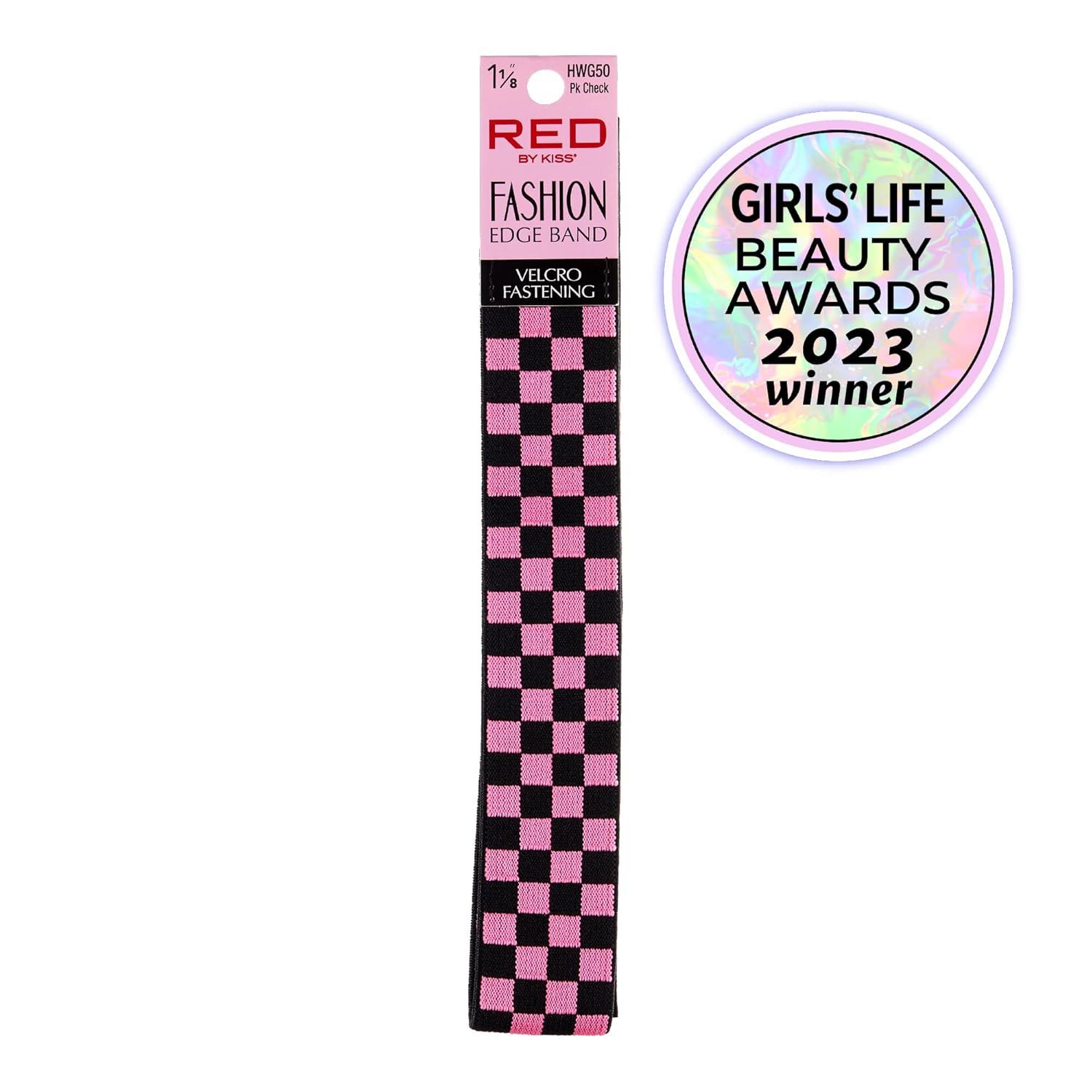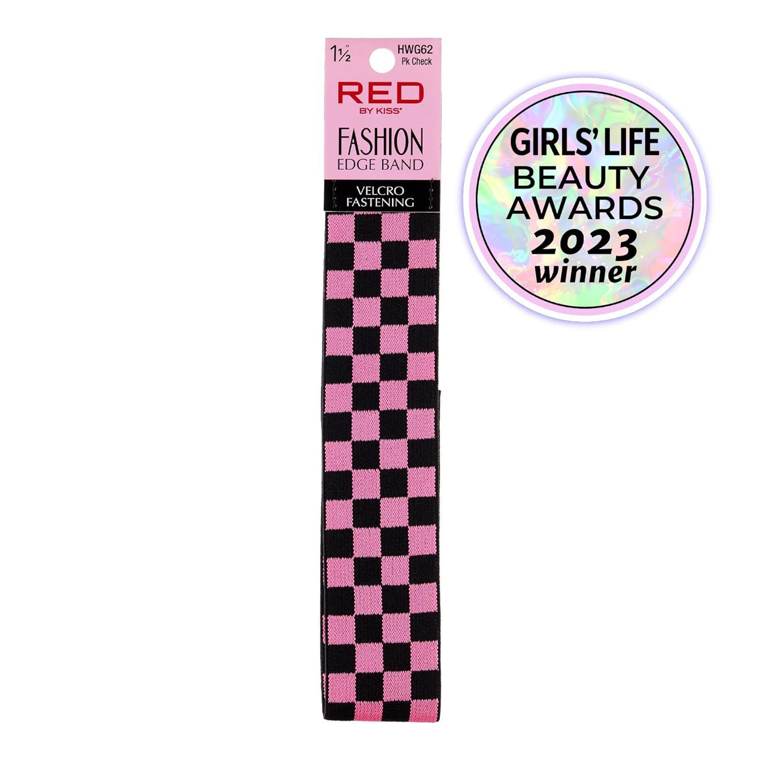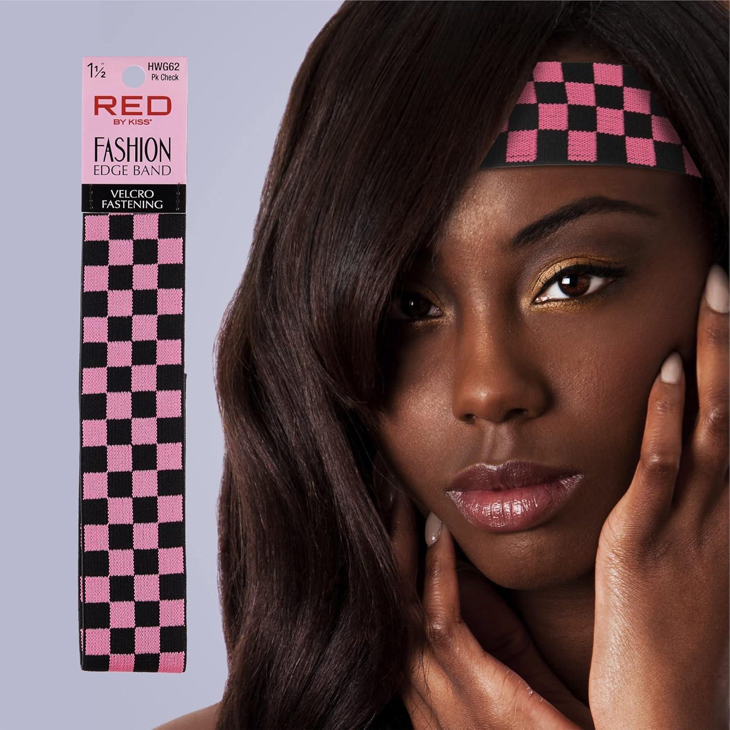Red by Kiss Fashion Lace Melting Elastic Band for Wigs and Edge Laying, Perfect fit during all activity, Keep Baby Hairs in Place (Regular 1-1/8″)(Pink Check)