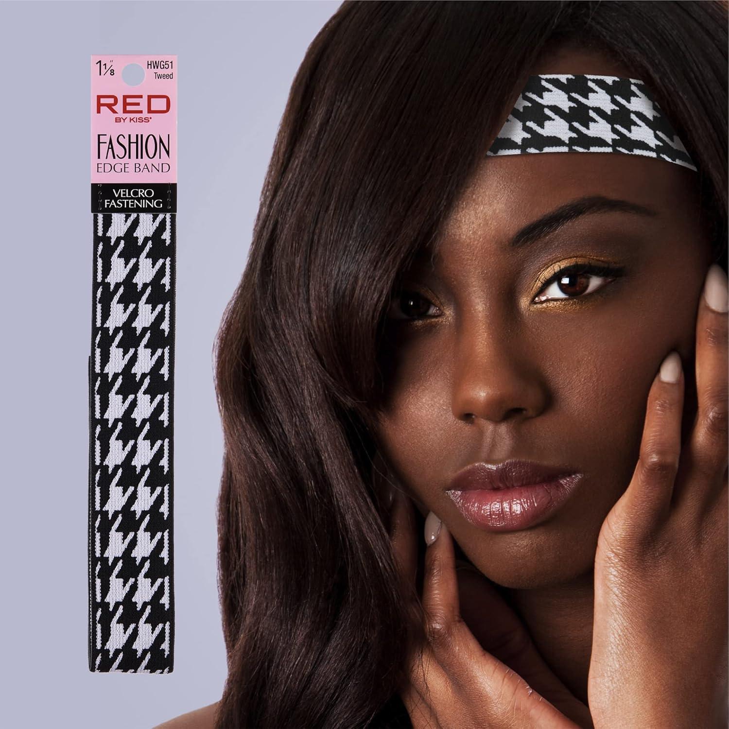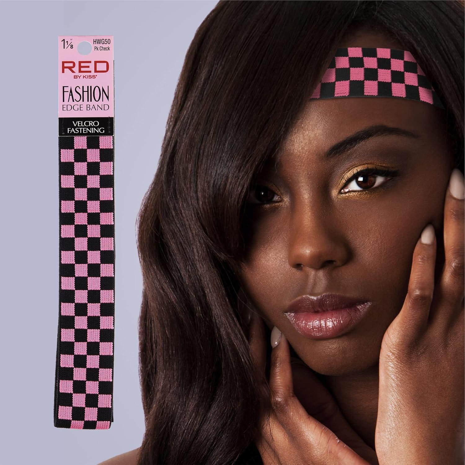 Red by Kiss Fashion Lace Melting Elastic Band for Wigs and Edge Laying, Perfect fit during all activity, Keep Baby Hairs in Place (Regular 1-1/8″)(Checker)