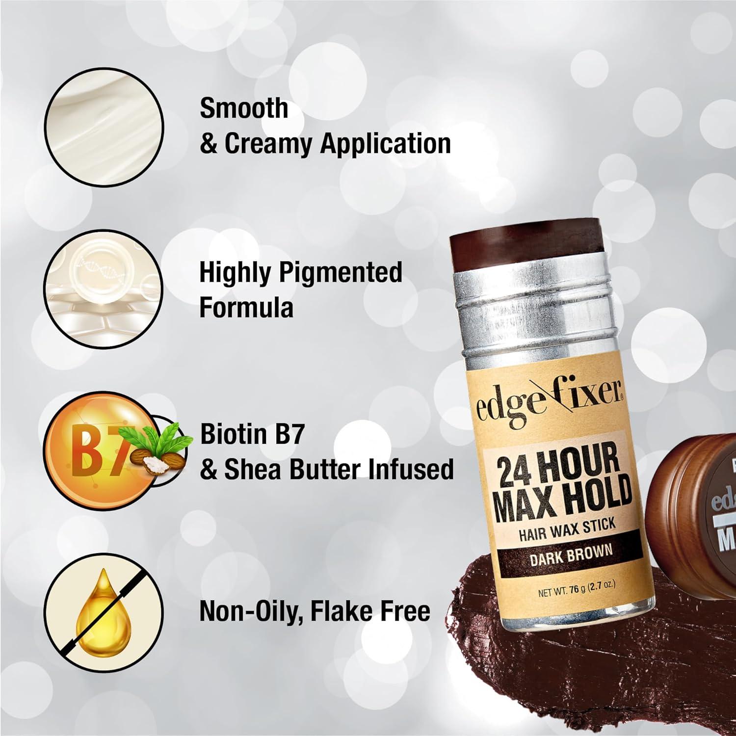 • Red by Kiss Hair Wax Stick 24HR Max Hold Edge Fixer Edge Control Pomade Non-Sticky, Non-Oily Flake Free Hair Styling Wax 2.7 oz. (Unscented)(Dark Brown)