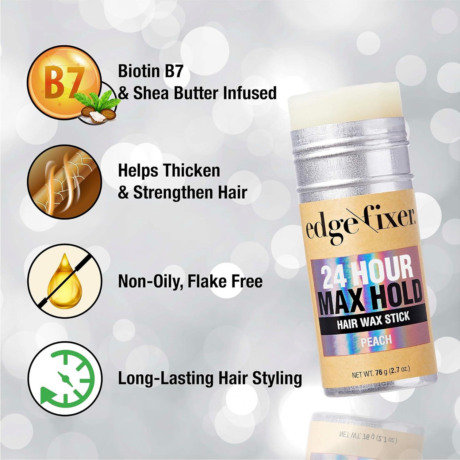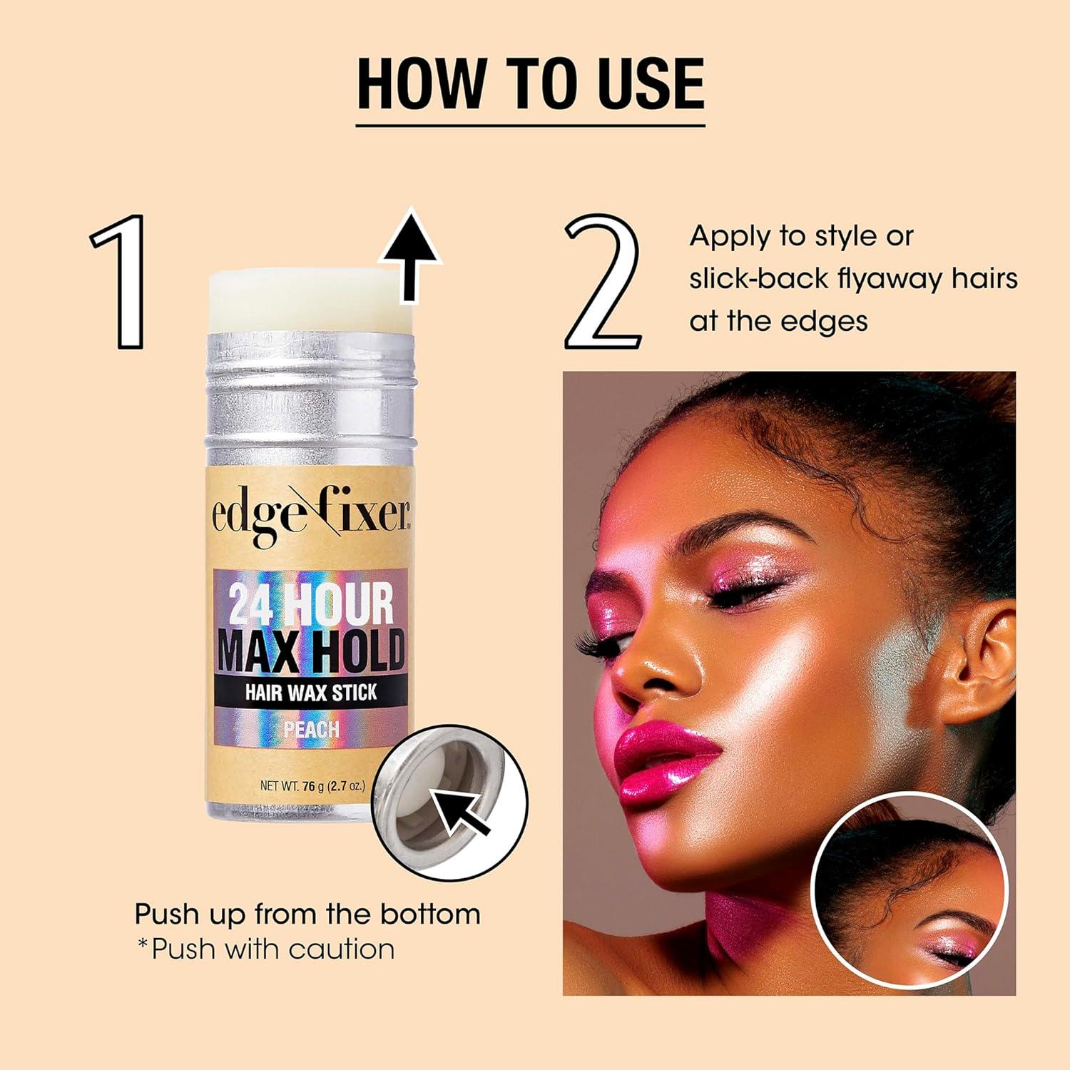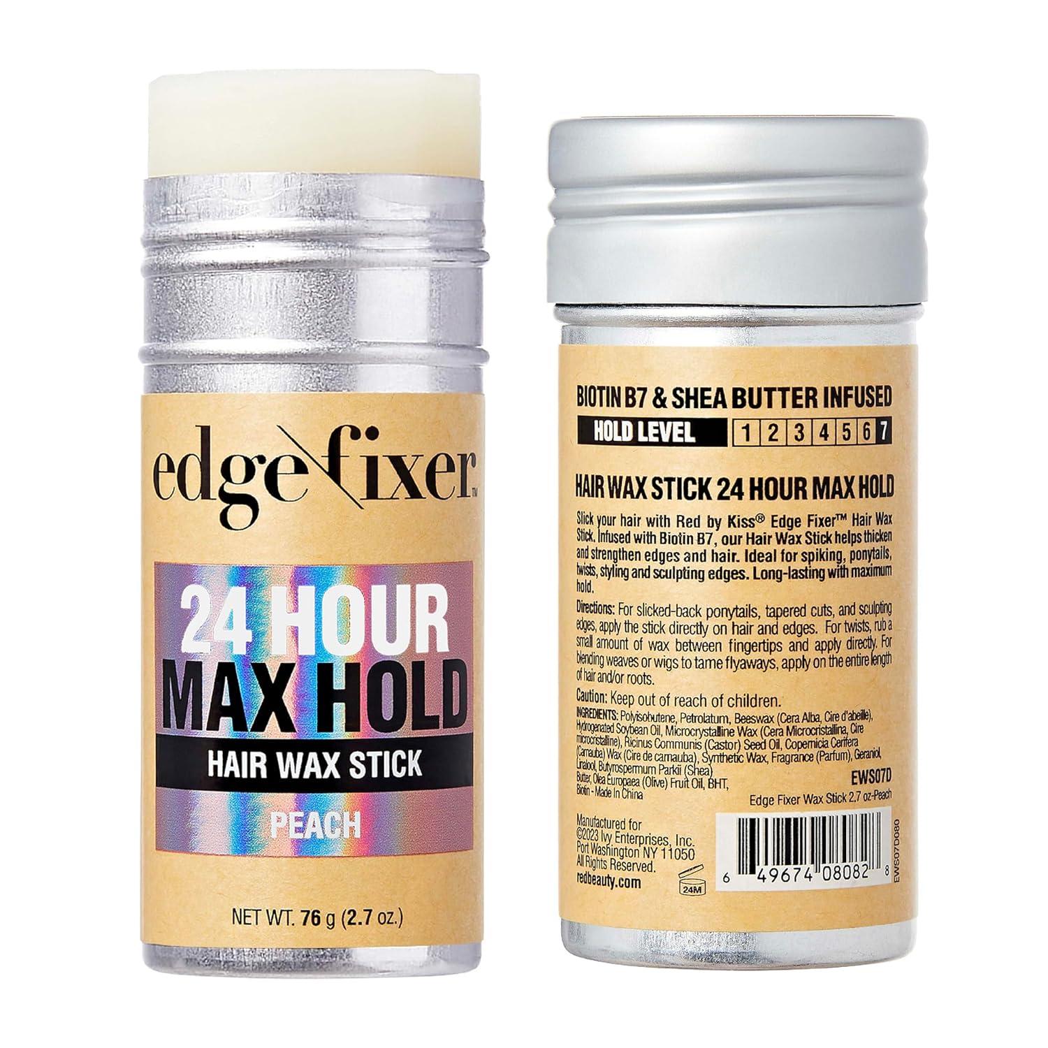 • Red by Kiss Hair Wax Stick 24HR Max Hold Edge Fixer Edge Control Pomade Non-Sticky, Non-Oily Flake Free Hair Styling Wax 2.7 oz. (Unscented)(Peach)