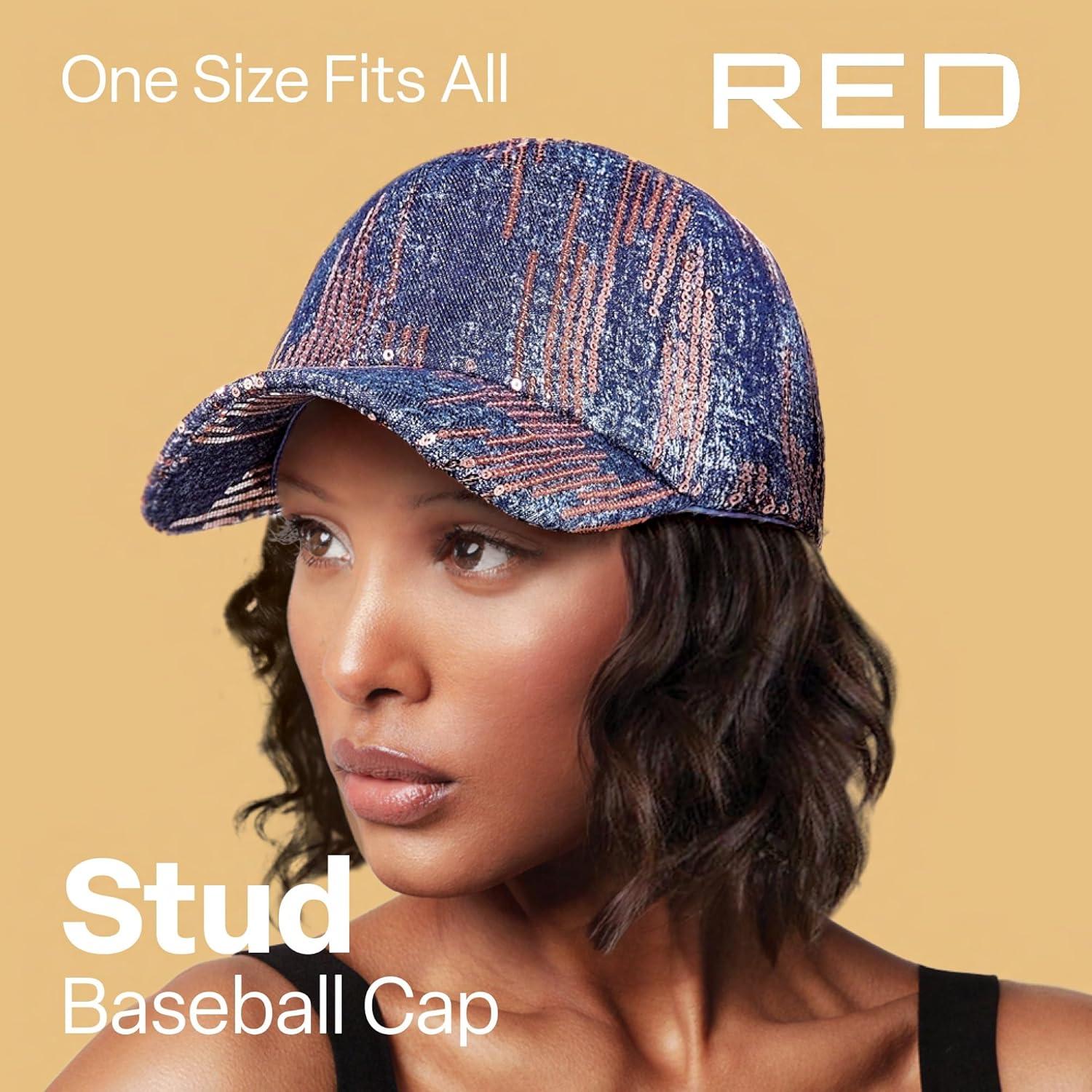 Red by Kiss Satin-Lined Baseball Cap, Comfortable Fit Adjustable Hat, Hair Protection Unique Designs(Elevated 1)