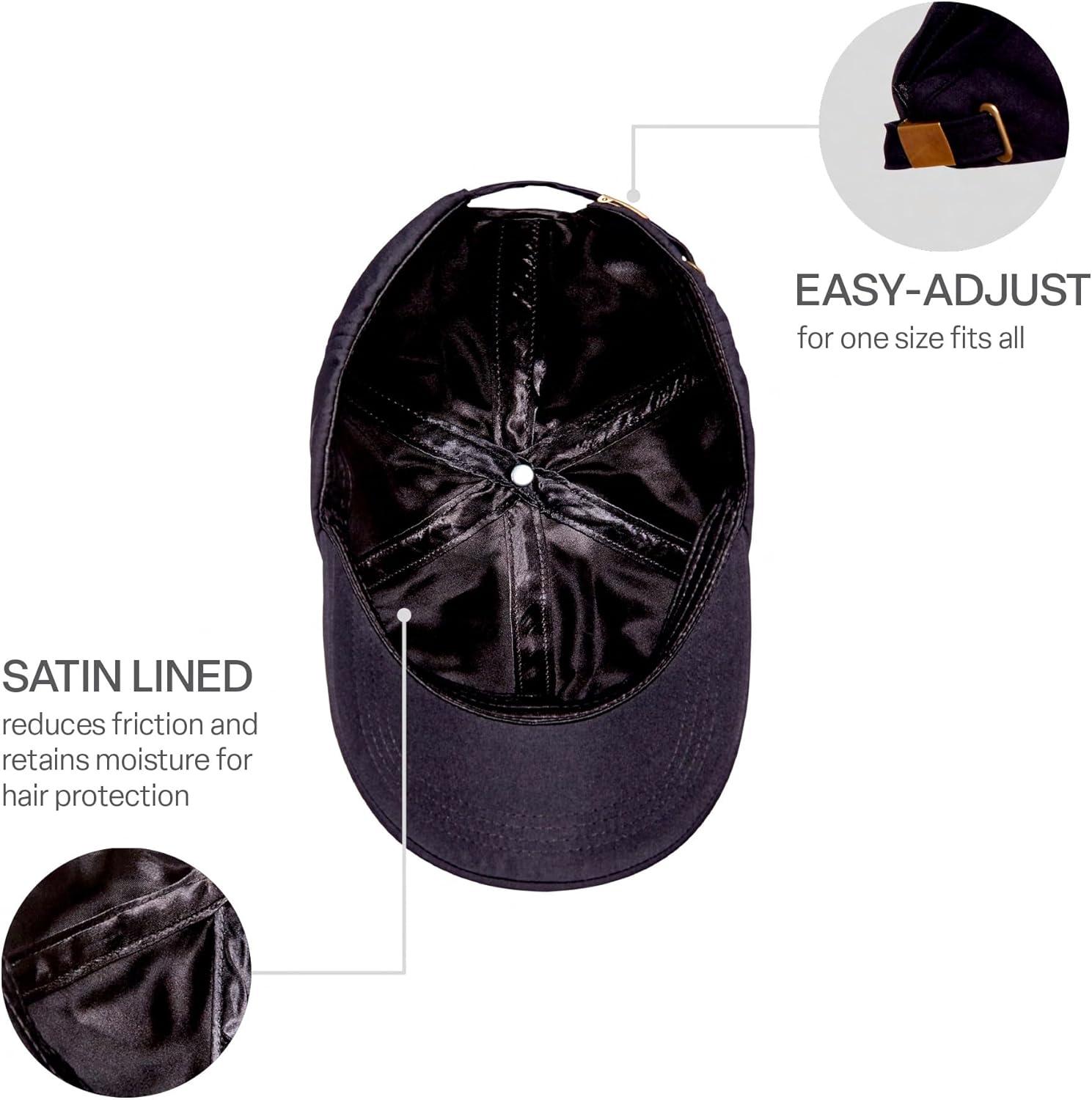 Red by Kiss Satin-Lined Backless Baseball Cap, Comfortable Fit Adjustable Hat for Ponytail Designs Fashion(Black)