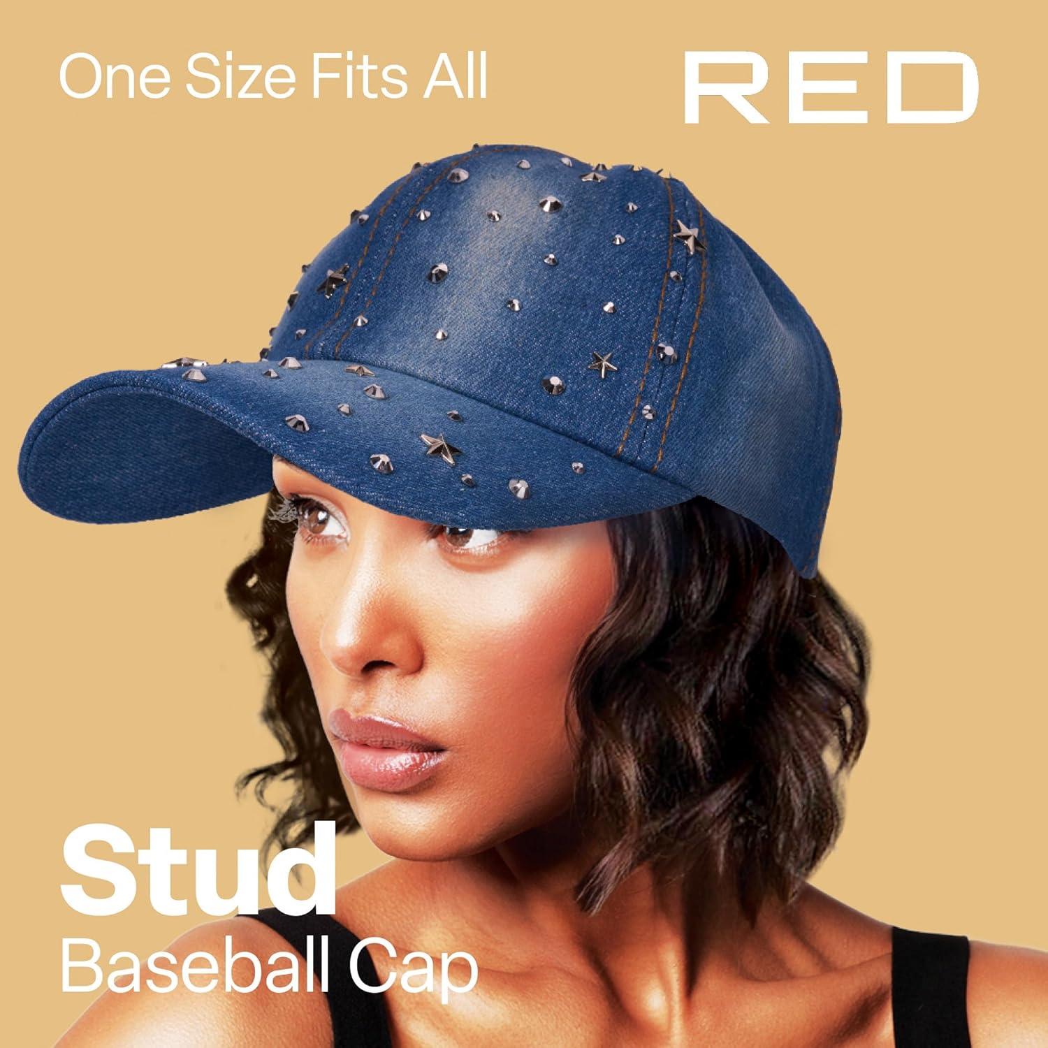 Red by Kiss Satin-Lined Baseball Cap, Comfortable Fit Adjustable Hat, Hair Protection Unique Designs(Star)