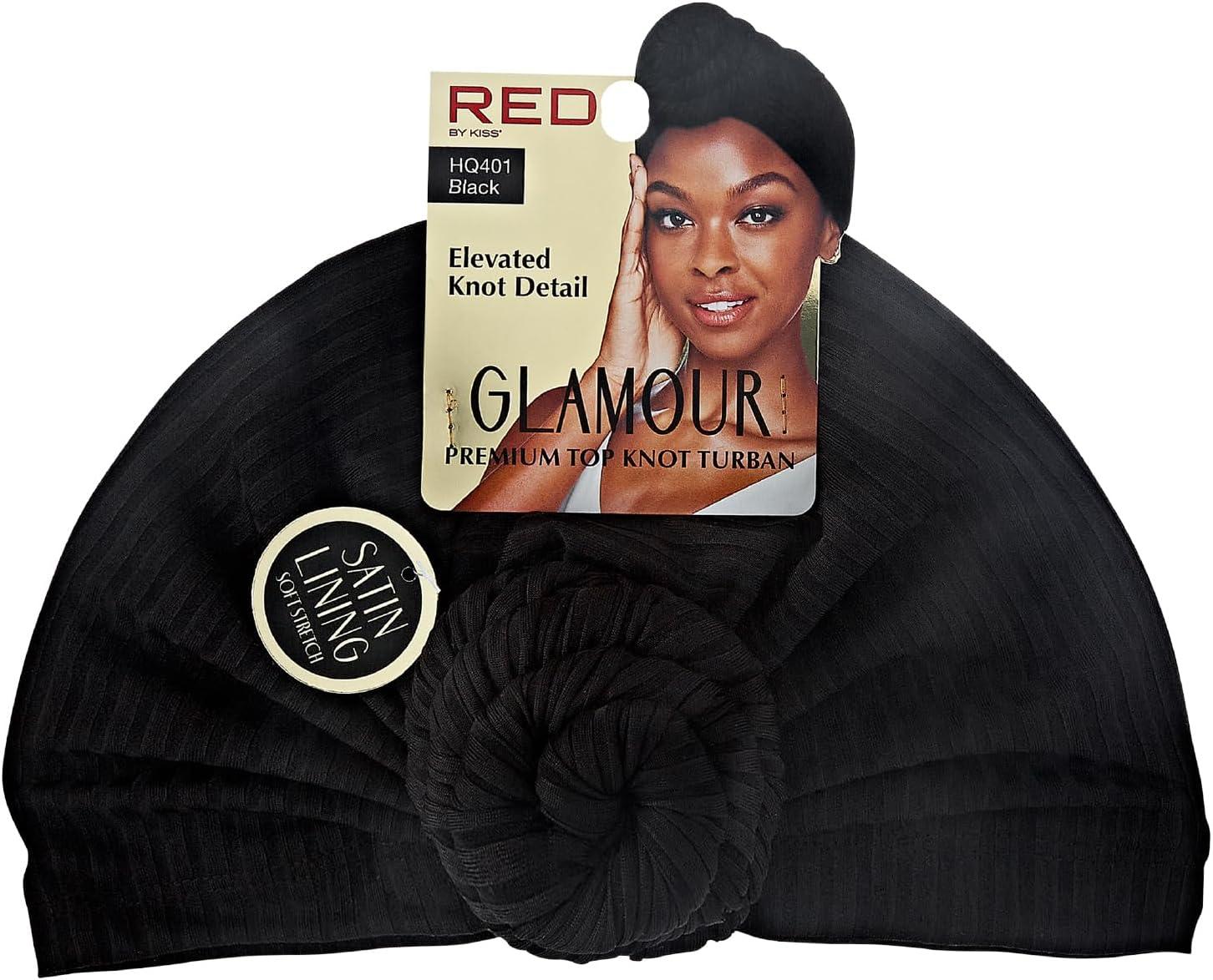 Red by Kiss Turban for Women, Silky Satin Interior, Comfortable, Breathable Head Wrap, Pre-Tied Twist African Knot Bonnet(Black)