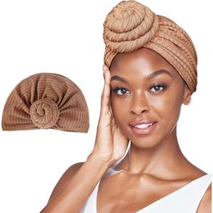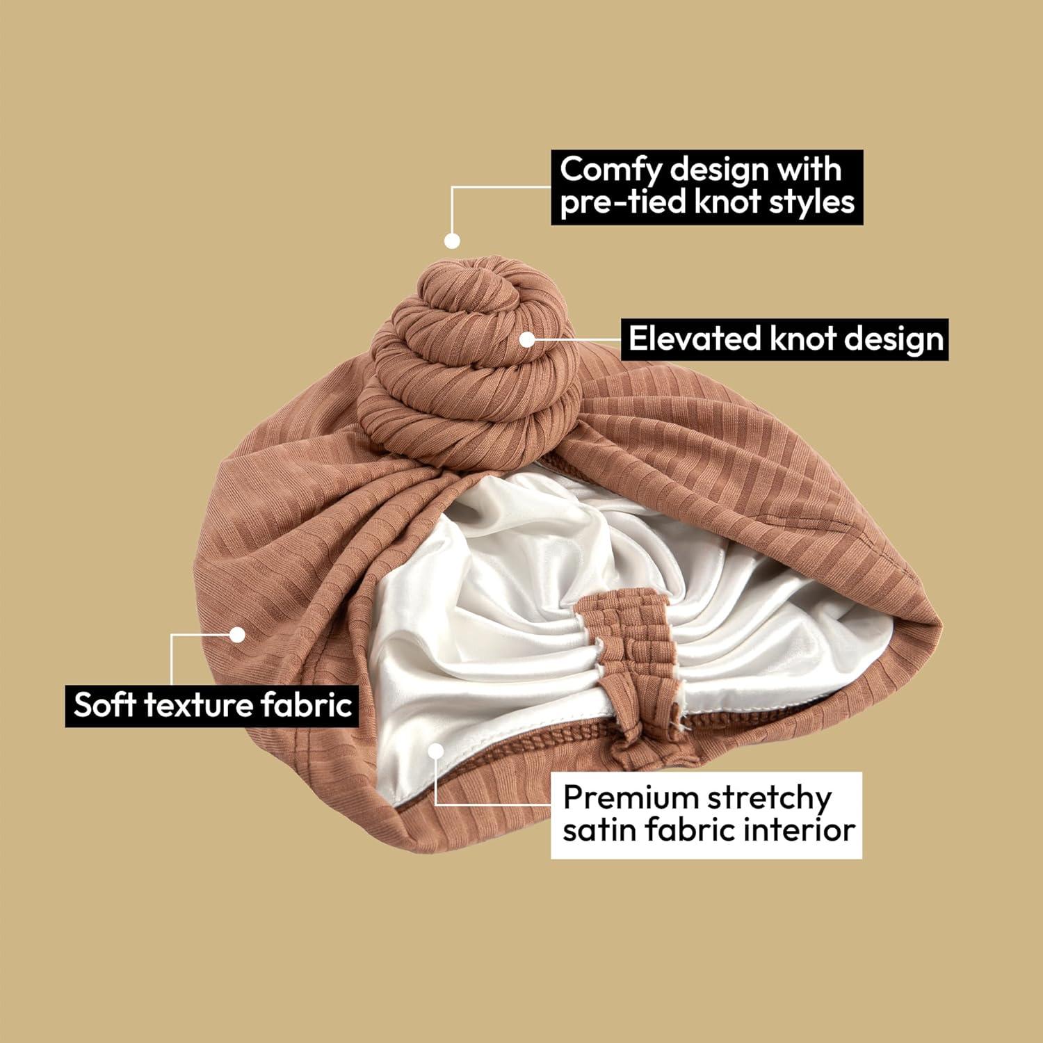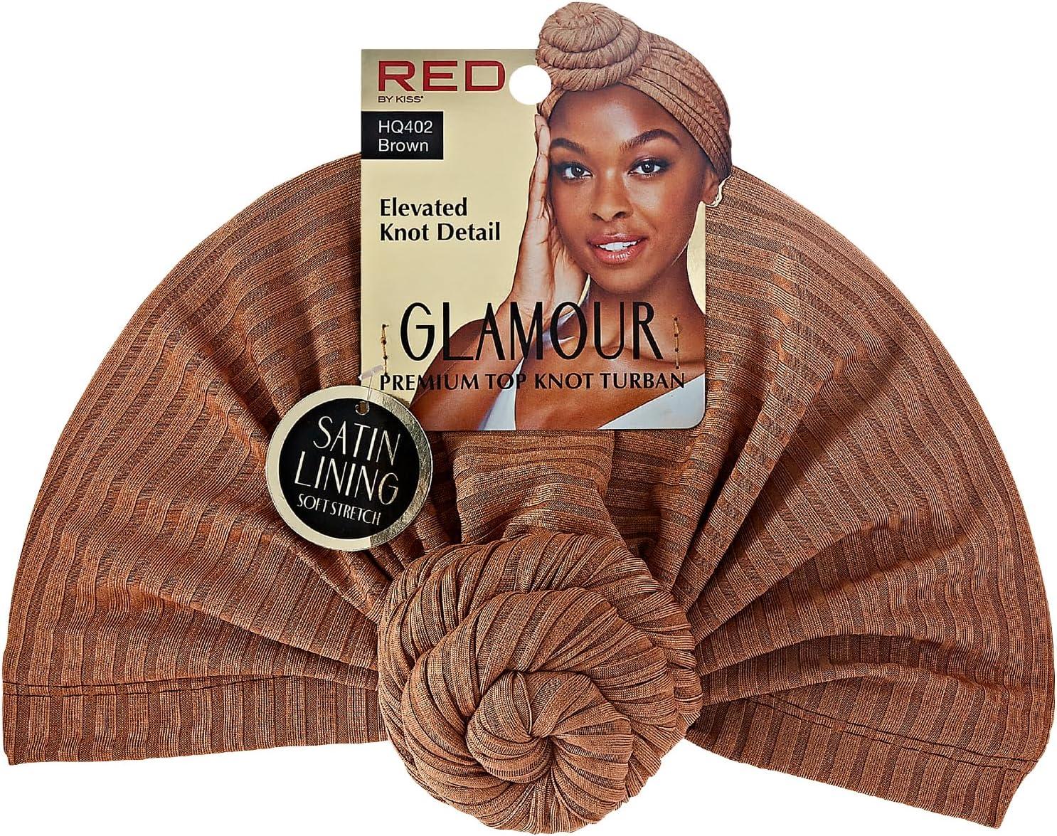 Red by Kiss Turban for Women, Silky Satin Interior, Comfortable, Breathable Head Wrap, Pre-Tied Twist African Knot Bonnet(Brown)