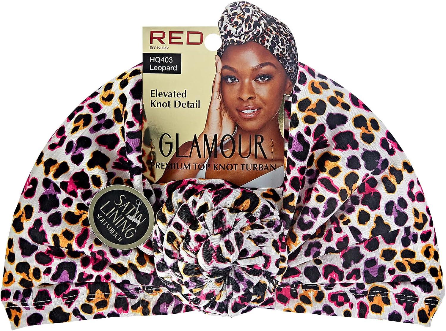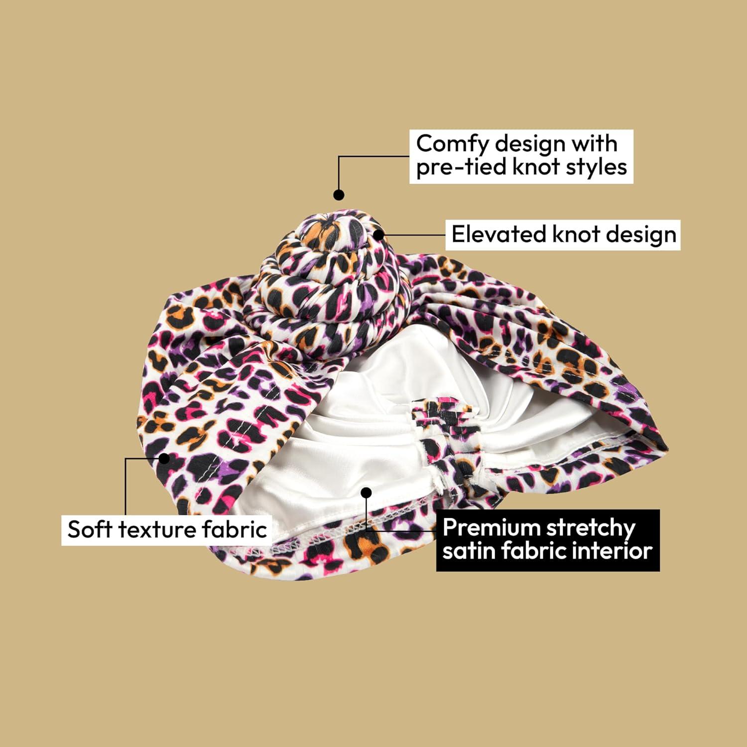Red by Kiss Turban for Women, Silky Satin Interior, Comfortable, Breathable Head Wrap, Pre-Tied Twist African Knot Bonnet(Leopard)