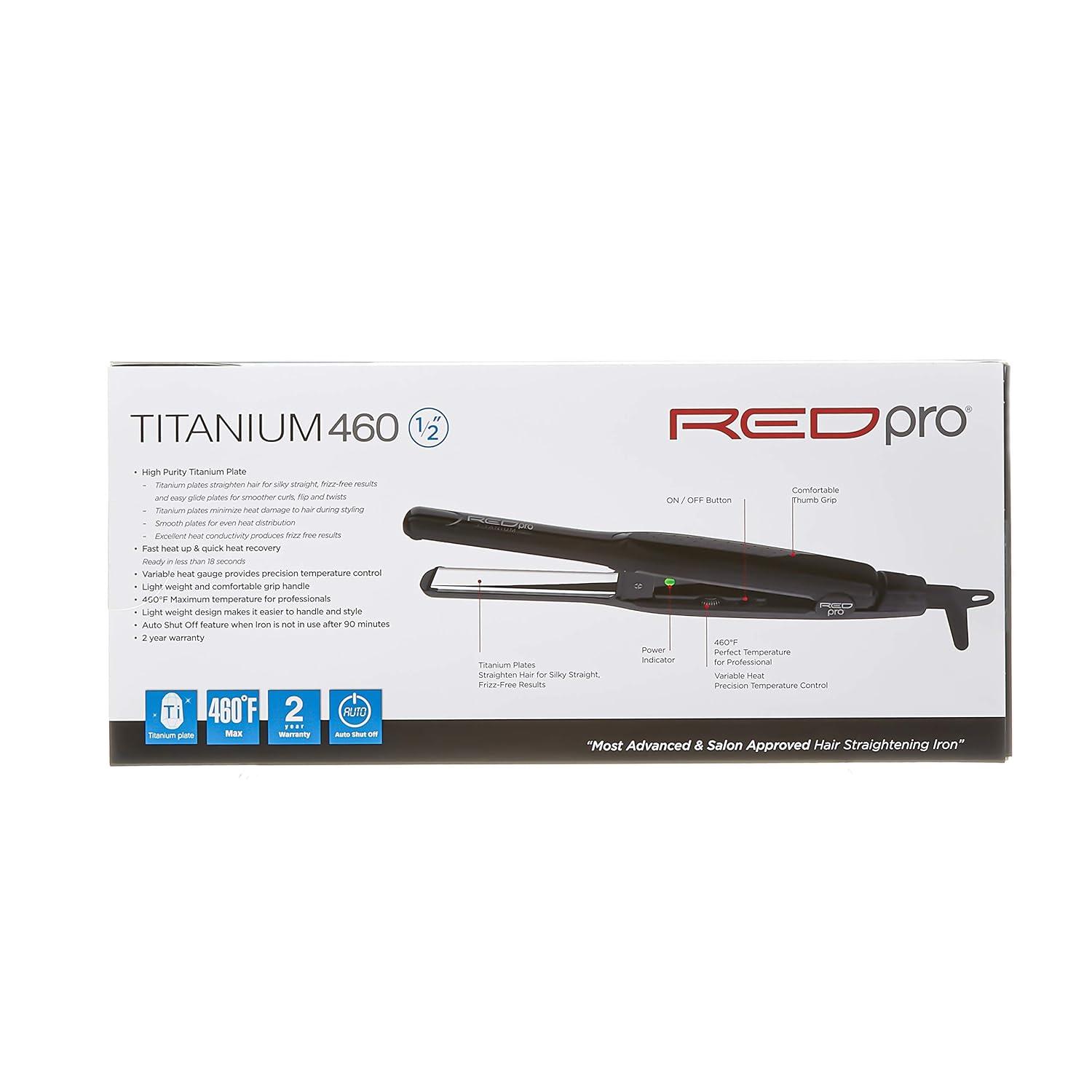 Red Pro 1/2″ Titanium Flat Iron with ultra smooth titanium plates for even heat distribution. Instant heat up – ready in 18 seconds. 460F maximum temperature for professionals. 2 year warranty.