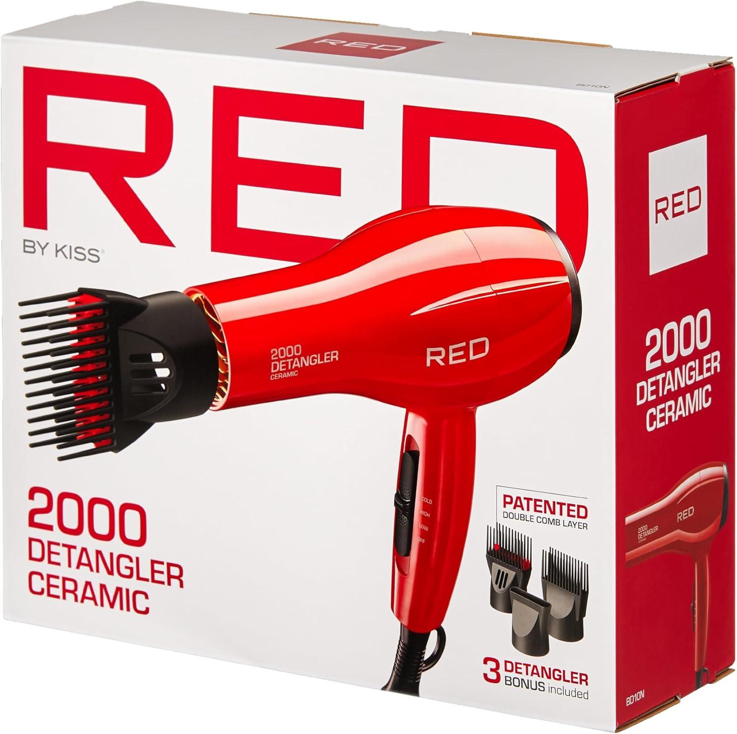 【TOURMALINE CERAMIC TECHNOLOGY】The RED by Kiss 2000 Ceramic Detangler Dryer features innovate Technology gives off negative ions to achieve smoother healthier hair that counteracts frizz and seals in moisture.