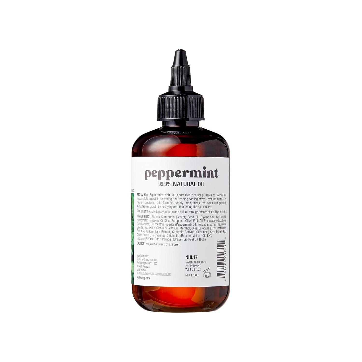 Red by Kiss Biotin Infused 99.9% Natural Hair Oil, 2.5 Fl Oz, Supports Growth & Healthy Hair, Organic Vegan Blend for All Hair Types, Unisex(Peppermint)