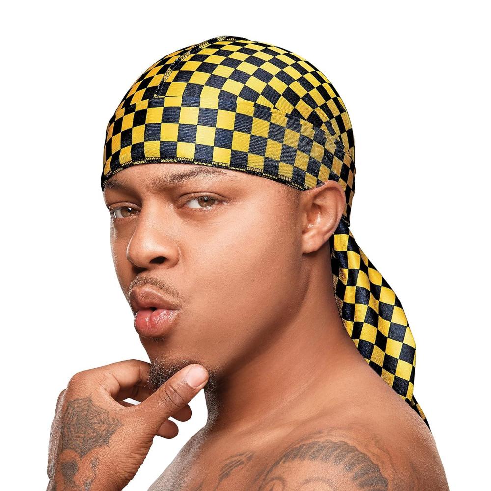 Red by Kiss Bow Wow X Power Wave Checker Silky Durag for Men Waves Silky Doo Rag (Red)(Yellow)