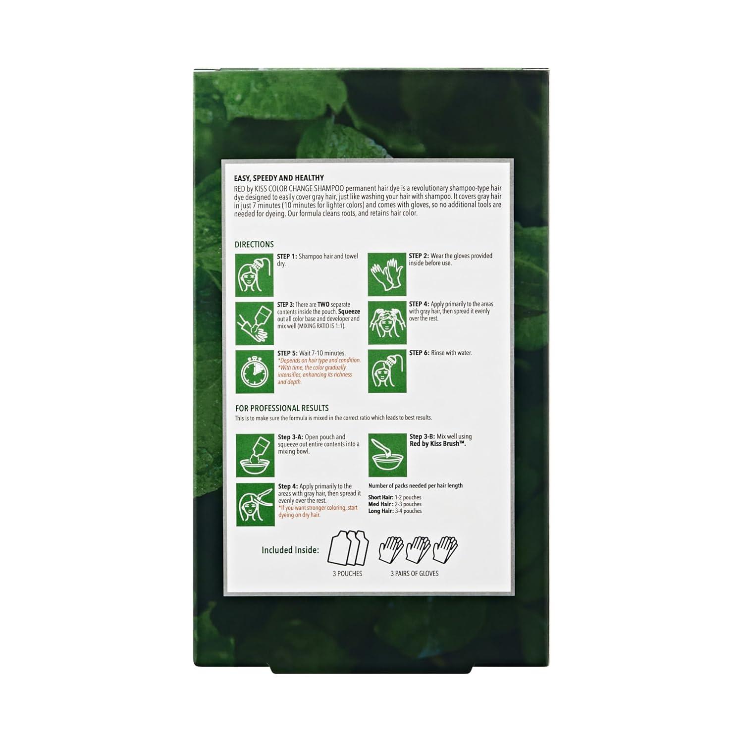 Red by Kiss Color Change Shampoo – Permanent Hair Color with 100% Gray Coverage, Quick 7-10 Minute Formula, No Tools Needed, Herbal Extracts, Includes 3 Shampoo Pouches(Deep Wine)