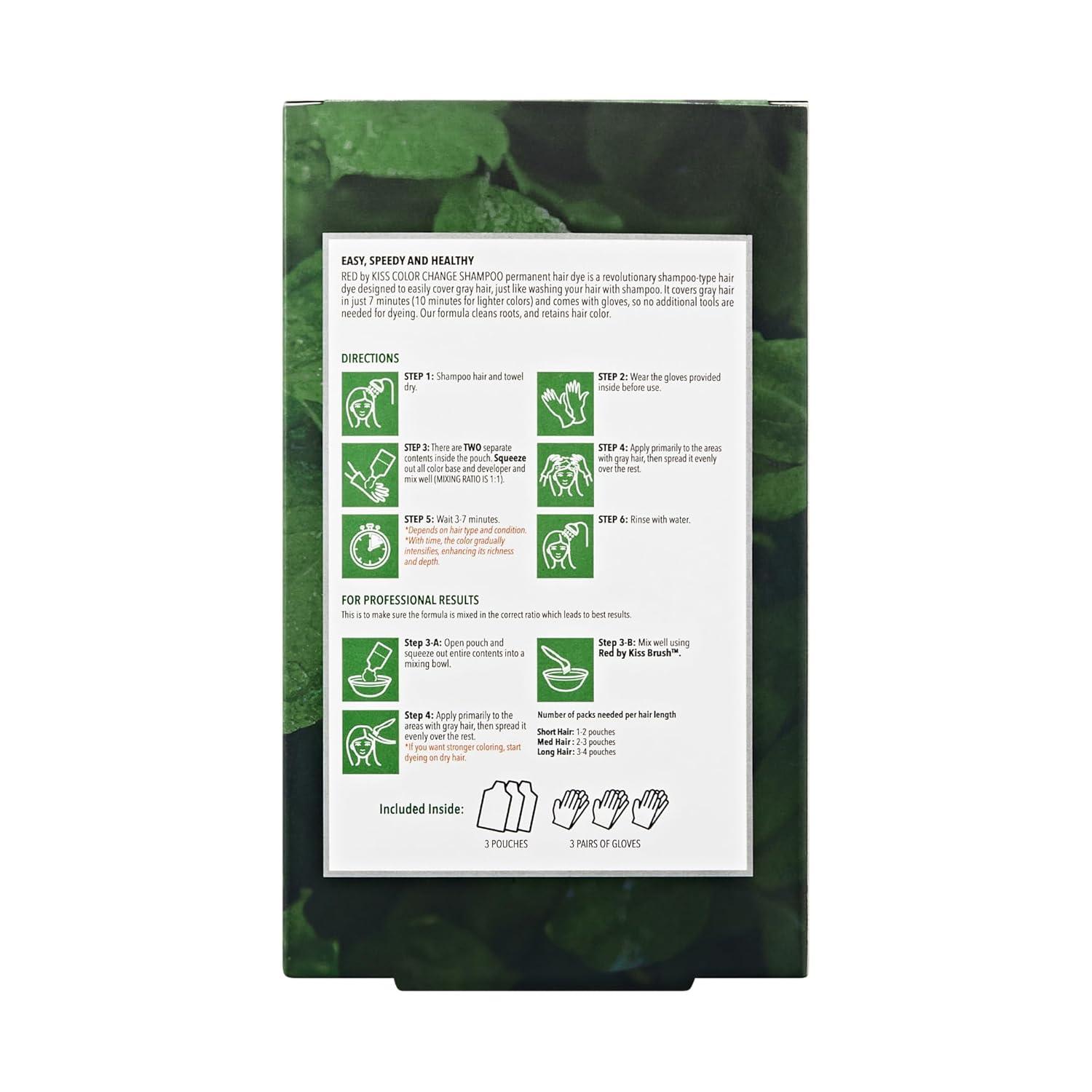 Red by Kiss Color Change Shampoo – Permanent Hair Color with 100% Gray Coverage, Quick 7-10 Minute Formula, No Tools Needed, Herbal Extracts, Includes 3 Shampoo Pouches(Jet Black)