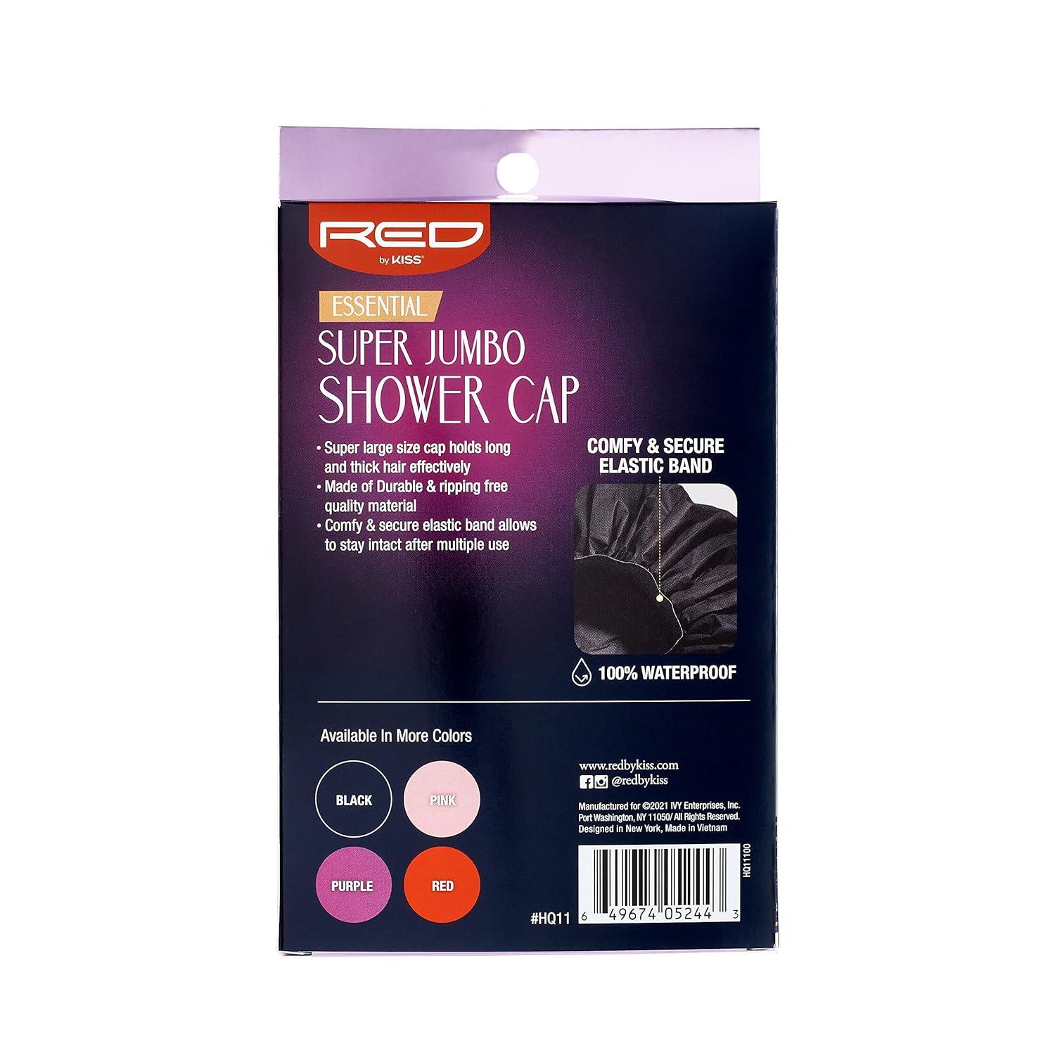 Red by Kiss Essential Super Large Waterproof Braid Shower Cap, Reusable Caps with Elastic Band(Super Jumbo (Pack of 1))